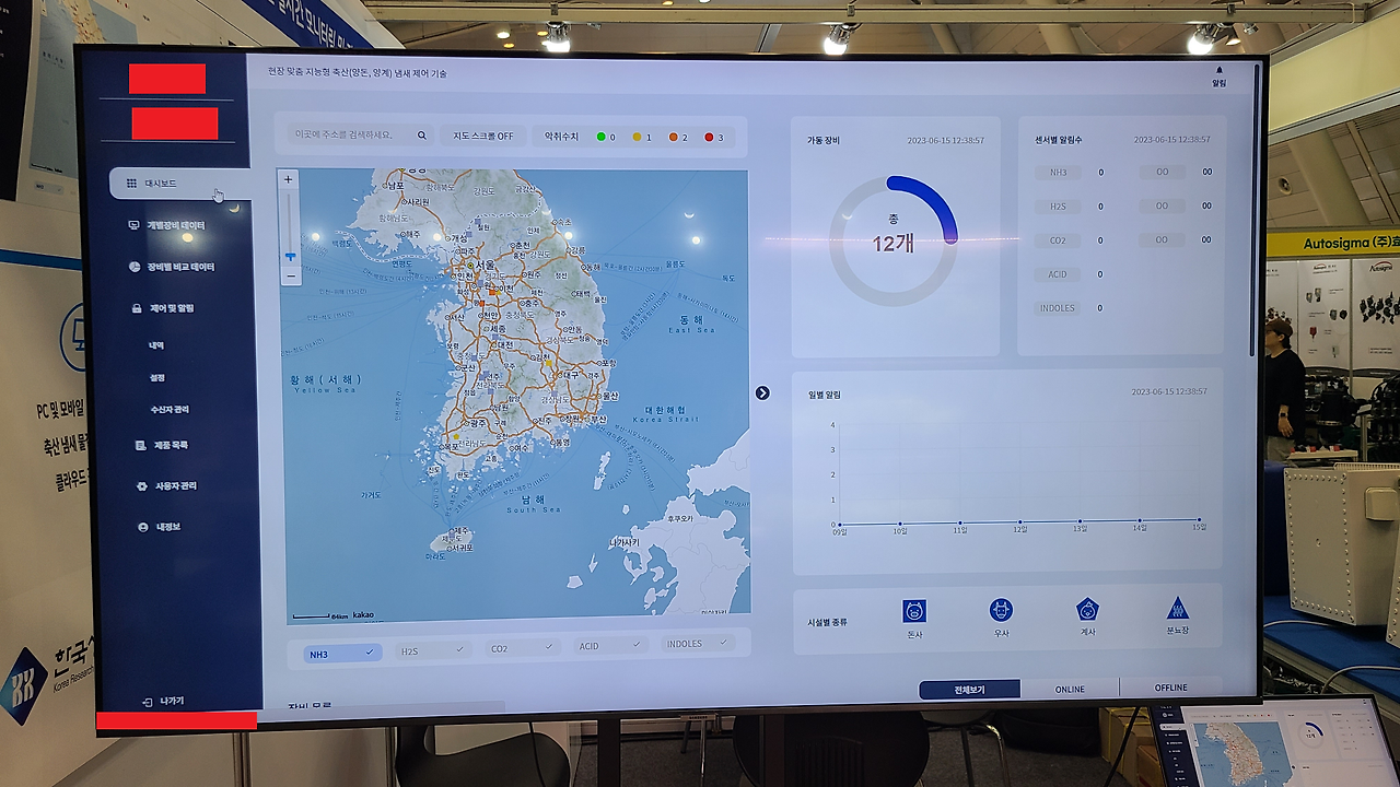 축산 농가의 악취 문제를 해결하기 위한 냄새 제어 솔루션 대시보드 화면