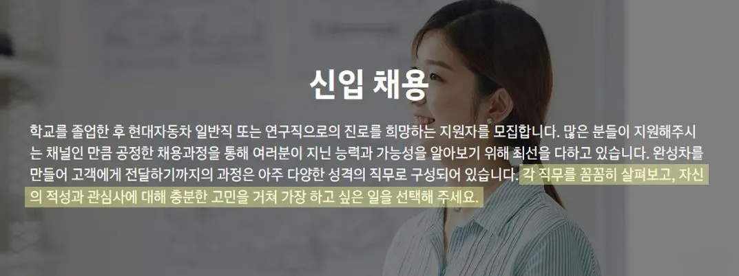 [현대자동차그룹 신입채용 안내화면]