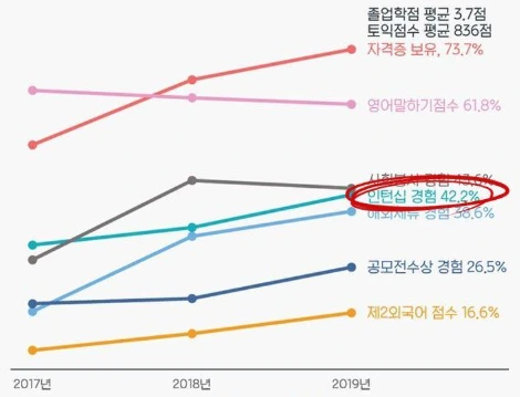 JOBKOREA에서 2019년 말 기준으로 조사한 자료를 보니 1000대기업 신입사원 중 인턴십 경험자가 42.2%였다고 하더군요. 이를 보면 일반적으로도 인턴십 경험은 거의 필수에 가까운 준비사항으로 자리매김하고 있는 듯합니다.