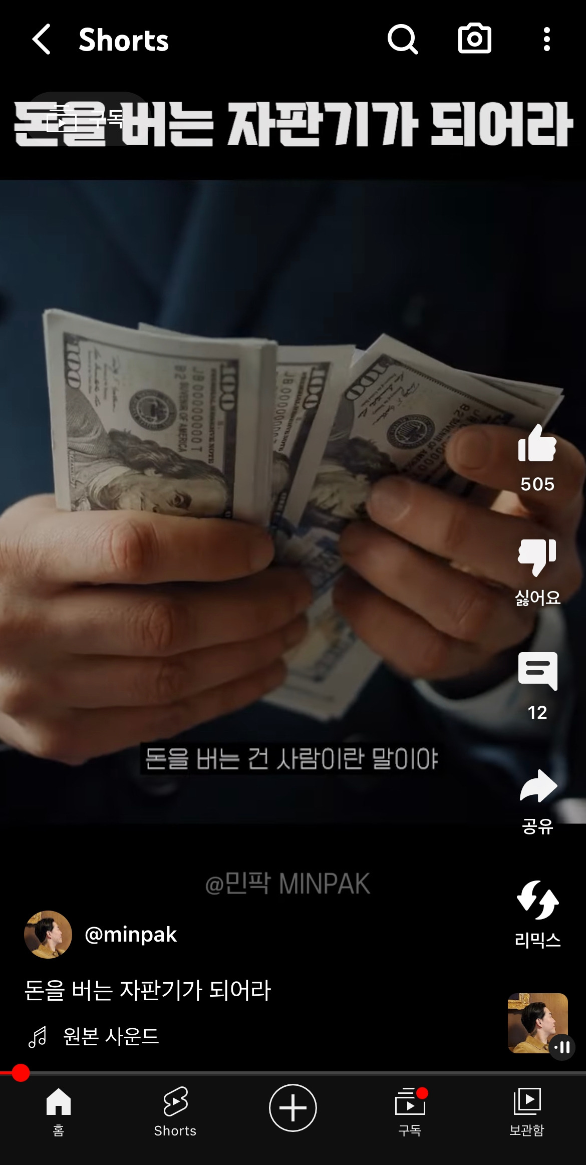 요즘 구독은 하지않았지만 유튜브 알고리즘에 이끌려 자주 보게된 채널이 하나있습니다. 보통 쇼츠를 내리다보면 이따금씩 나타납니다. 괜찮다싶으면 댓글에 있는 풀영상으로 가기 링크를 누르고 전체 내용을 보죠.