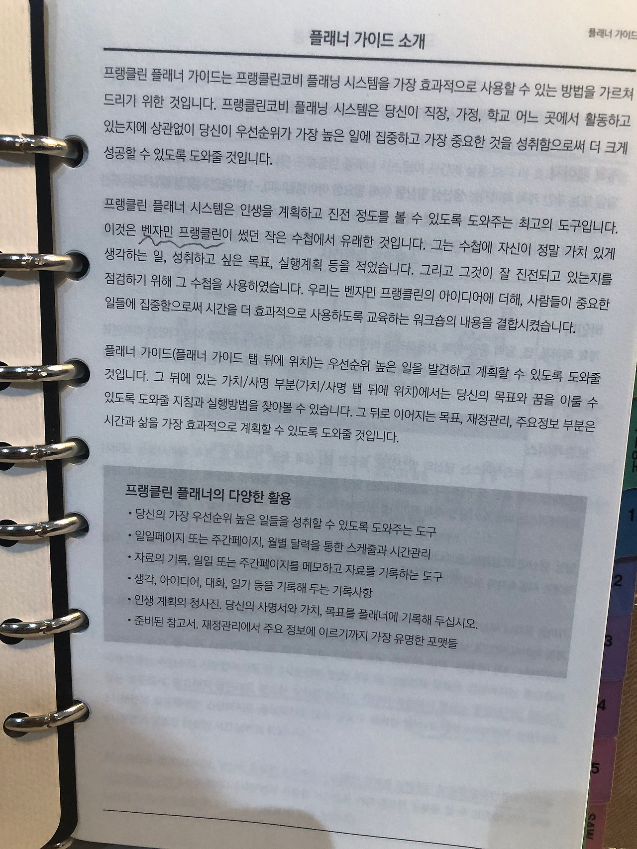미국의 달러화에 그려진 정치가이자 외교관, 과학자, 저술가로 알려진 벤자민 프랭클린의 시간관리와 삶의 가치를 찾을때 사용한 방법을 토대로 만든 플래너입니다. 지인의 추천으로 사게됐는데요.