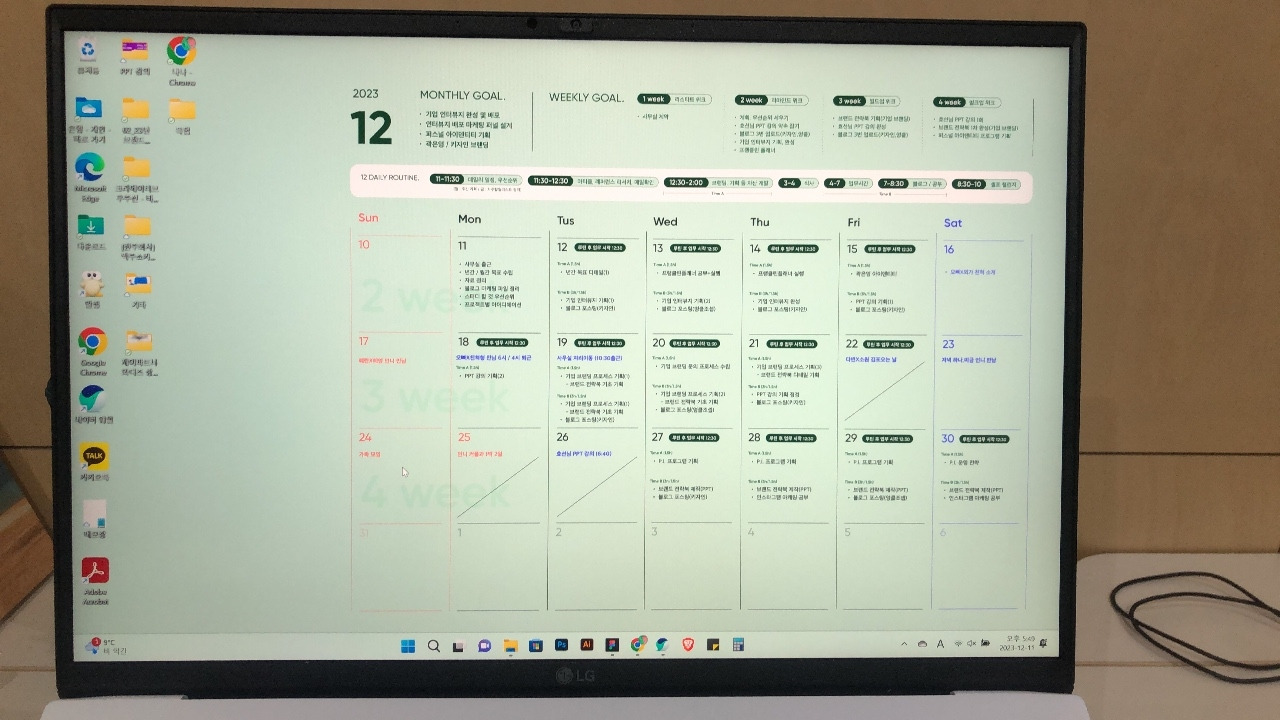 설정한 우선순위에 맞게 12월 해야할 일들을 빼곡하게 스케쥴링 해봤습니다. (프랭클린플래너를 받기 전에 작업한거라, 제 나름대로의 포맷을 만들었어요.)