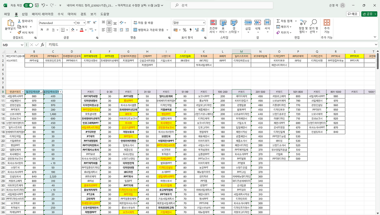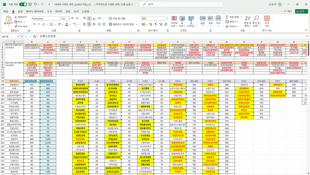단순히 상위노출만 시키는 것이 아닌 브랜드 블로그 마케팅을 연구하고, 키워드를 먼저 조사했습니다. 키워드부터 전략적으로 셋팅해야겠죠.