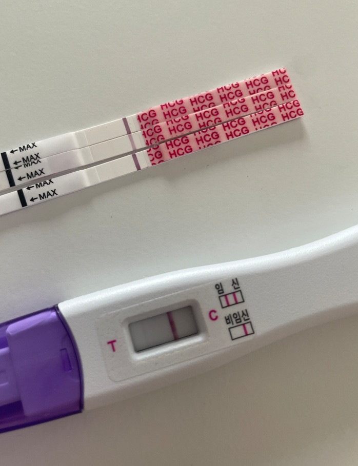 우리 부부에게 결단코 임밍아웃이란 것은 없다. 임테기 한번 하는 것에도 비밀이 없는 사이니까. 내가 참지를 못한다. 그래, 하고 싶으면 해 봐 남편은 나를 못 말리겠다는 듯이 웃었다. 가벼운 마음으로 임테기를 했다. 한 줄 나와도 나는 할렐루야! 하나님을 찬양할거야, 굳게 다짐하며. 어쩌면 이 시점에는 두 줄을 보고 싶다기보다, 한 줄이 나와도 감사하는 믿음이 되기를 바라며 임테기를 했던 것 같다.
