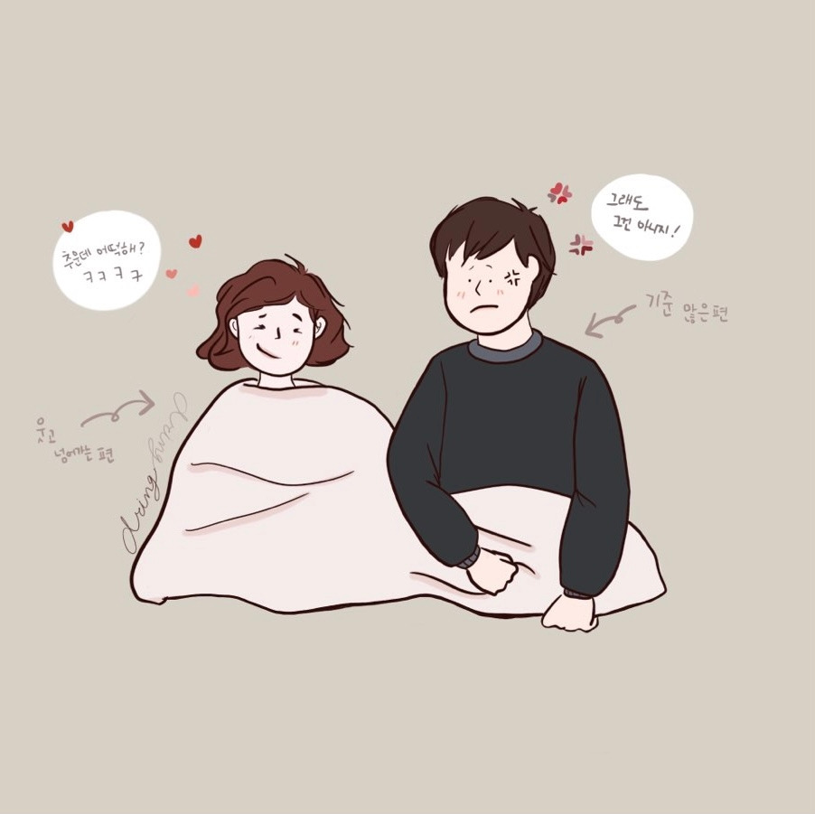 아내가 춥다니 직접 이불을 가져다 주는 남자.