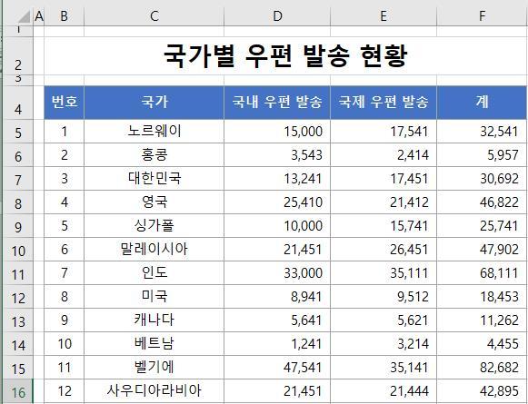 이제 완성되었습니다. 국가명 필드가 보기 좋게 균등하게 정렬이 되어 있습니다