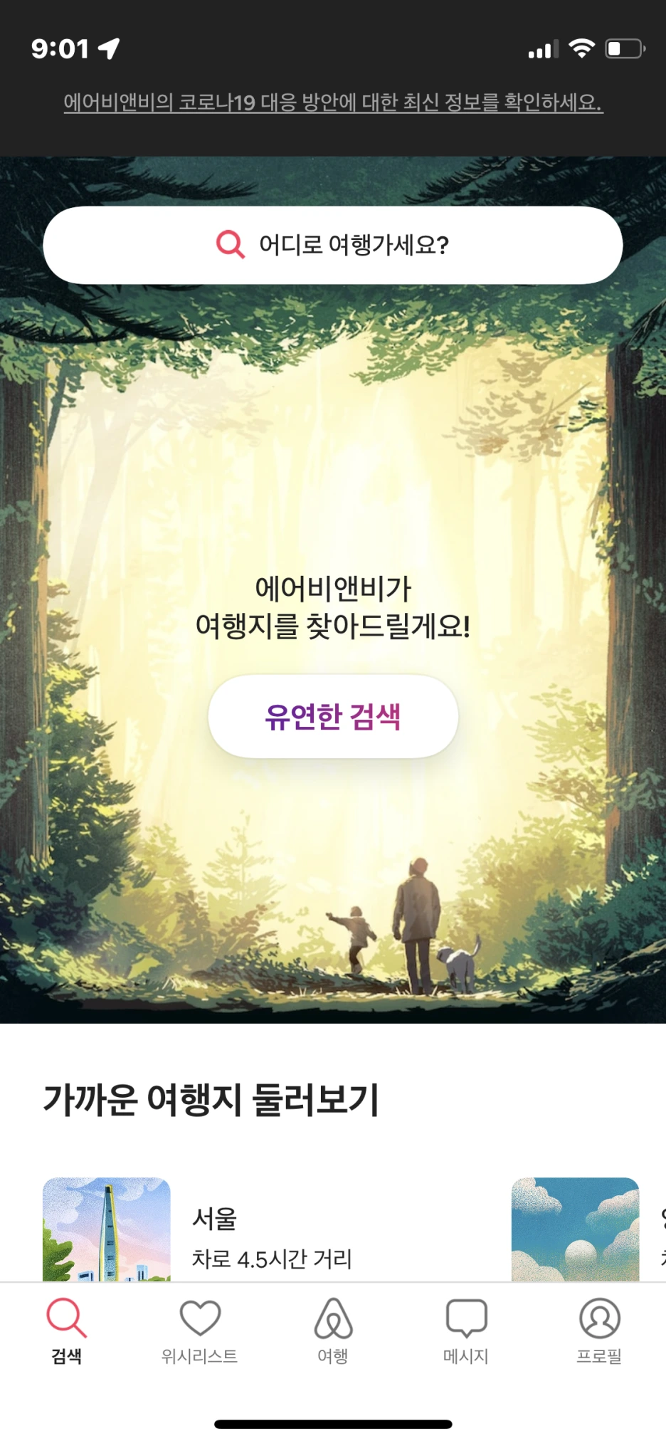 에어비앤비는 기존에도 심플한 UI로 구성되어 있던 것으로 기억한다. 다른 숙소 앱들처럼 광고성 글들도 보이지 않고 지나치게 할인율을 과대해서 보여주지도 않았다. 현재의 앱 구성도 마찬가지이다. 맨 처음 보았던 다른 앱들과 다시 한번 비교해 보면 에어비앤비는 아주 심플한 화면 구성에 멋진 일러스트를 더해 심미적인 효과를 드러내고 있다. 에어비앤비 홈 화면에 있는 콘텐츠에 사용된 이미지들도 일만 이미지가 아닌 고퀄리티에 멋진 이미지와 심플한 텍스트와 레이아웃으로 보기 좋은 디자인을 선보이고 있다.