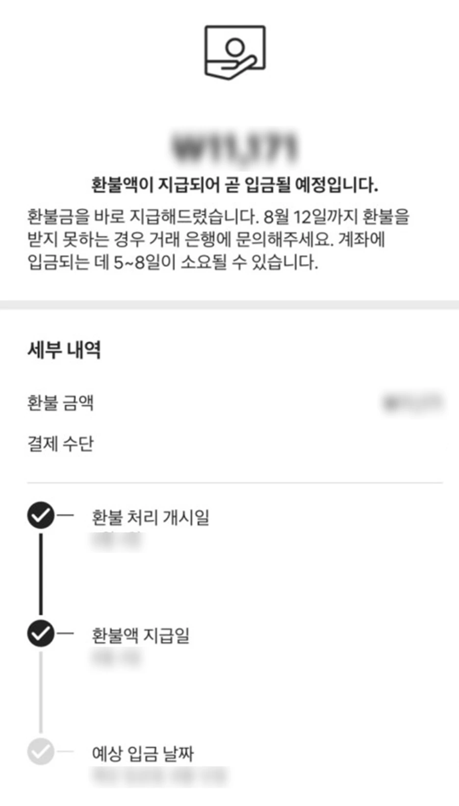 다만 그래도 사용자의 불편함을 고려해 조금이라도 반영된 포스텔의 법칙이 있다면 환불 진행 절차 과정을 시각적으로 보여준다는 것이다. 환불을 신청한 고객은 자신의 돈이 언제 들어올지가 가장 궁금할 것이다. 이때 이러한 과정을 보여주지 않았다면 사용자는 다시 고객센터에 물어보거나 앱을 이리저리 뒤지면서 확인했어야 할 것이다. 이런한 진행과정을 보여줌으로써 나름의 사용자가 취할 행동에 공감해서 유연하게 대처했다고 볼 수 있다.