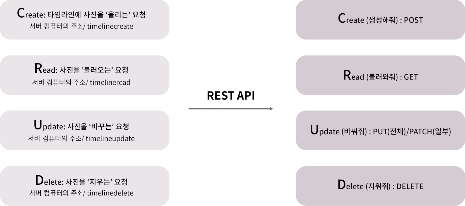 위의 개발자는 API가 아직 미완성이기 때문에 서버로부터 요청 API를 보냈으나 이미지로 응답받지 못했다는 말을 하고 있는 거였다. 그런데 이런 API를 각자 필요한 방식에 맞게 다양하게 설계한다면 어떻게 될까? 많은 개발자들이 각자의 API를 사용해 개발을 한다면 유지 보수하는데 많은 리소스가 들 것이다. 그래서 이러한 문제를 해결하기 위해 일정한 아키텍처의 제약 조건을 준수하는 애플리케이션 프로그래밍 인터페이스를 만들어 사용하기로 했다. 그것이 바로 REST API이다.