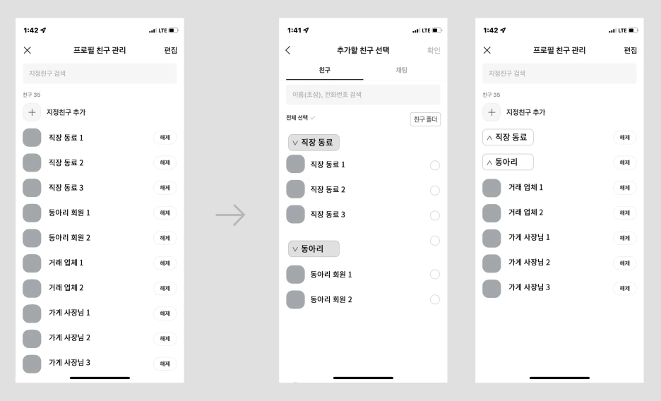 멀티 프로필 지정 친구 선택 시, 친구 목록에 폴더를 만들어 관리하길 원한다.