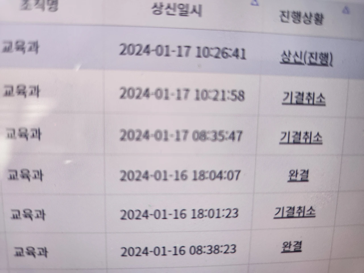 내 시스템에는 온통 기결취소(기존에 올린 문서를 취소하는 것)된 목록이 빼곡하다.
