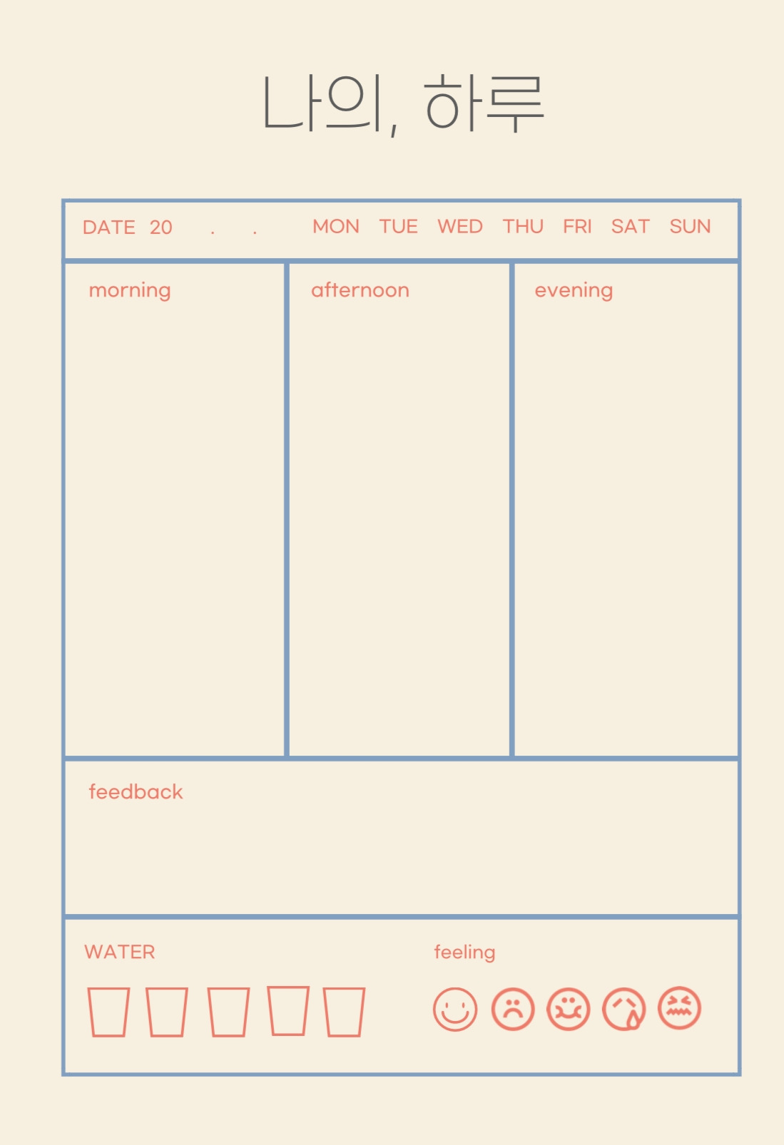 그래서 '나의 하루' 양식지를 직접 만들어봤다.