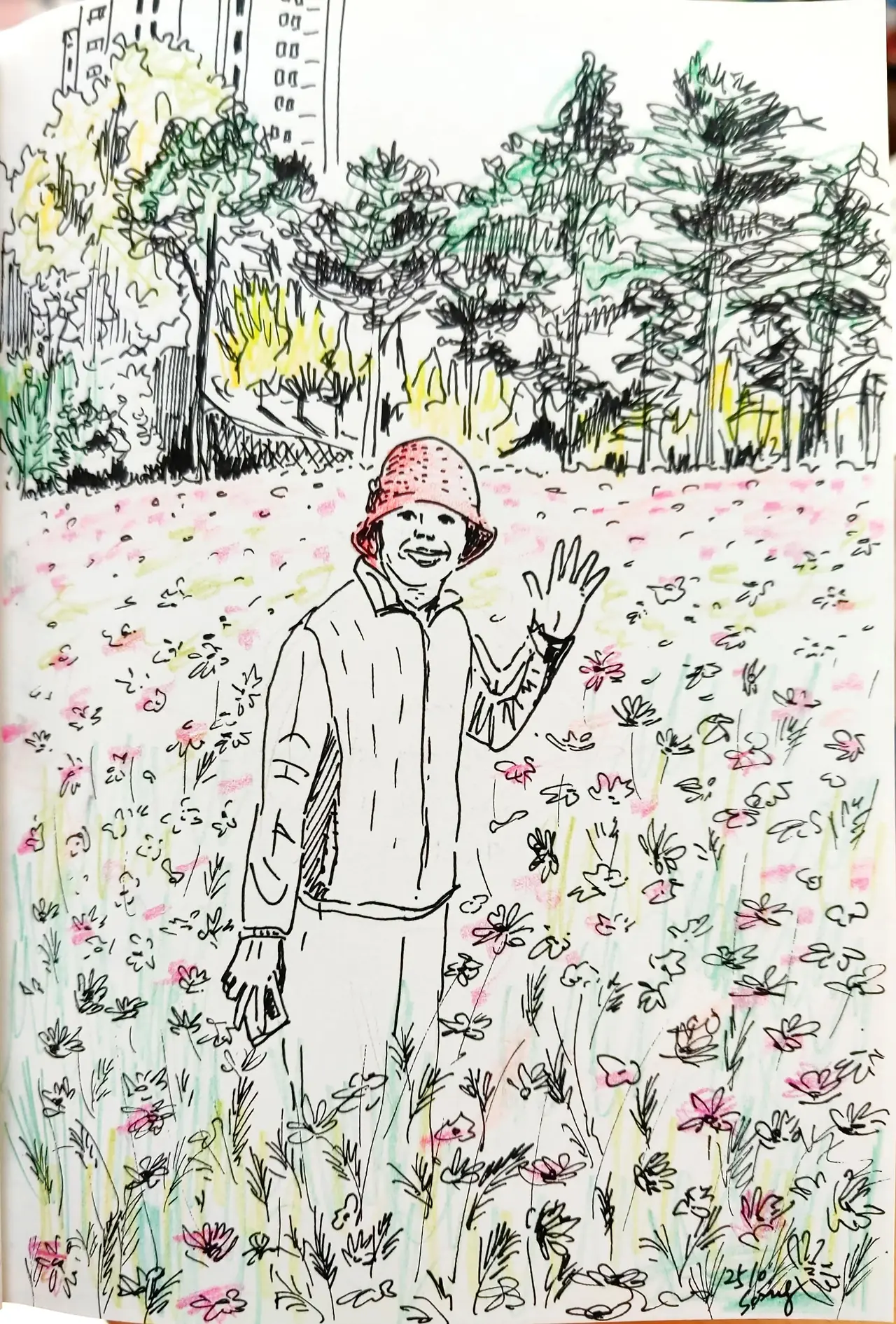 꽃길을 가꾸는 엄마의 마음을 저도 닮을 수 있을까요. 코스모스가 활짝 핀 공원에서 오늘도 엄마와의 추억을 이렇게 그림으로 담습니다.