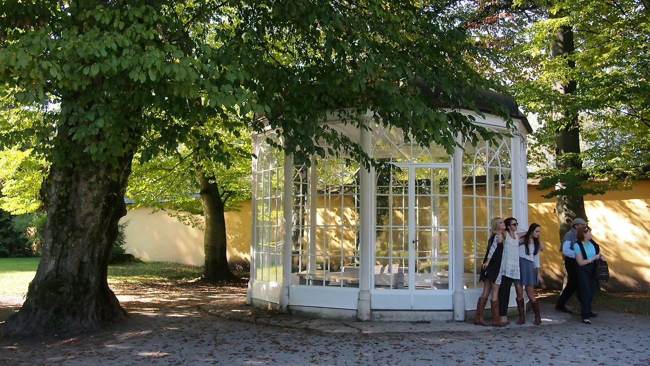 <사운드 오브 뮤직>하면 가장 인상 깊게 떠오르는 장면이 있다. Helbrunn 공원 안에 있는 유리 정자 안에서 캡틴의 딸과 우체부의 사랑의 세레나데가 나온 장면이기 때문이다. 극 중에서 둘은 저 정자 안에서 춤을 추며 사랑을 속삭인다.