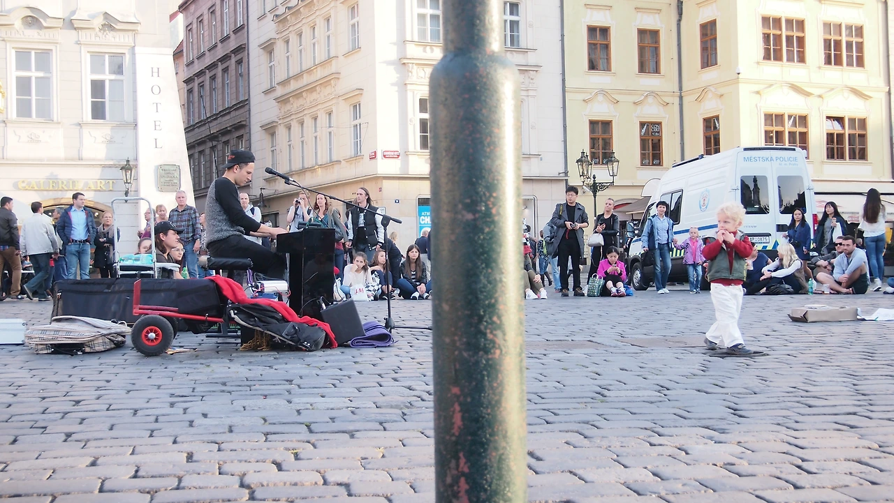 중앙 광장 안, 이 자리에서는 뮤지션들이 항상 연주를 하는 곳이다. 음악의 도시보다 더 음악이 끊이지 않는 곳. 로맨스의 도시라고 하지만 낭만의 도시 파리보다 덜 알려져 있는 곳이 프라하다. 그런데도 굳이 1순위가 되려 하지 않는 듯하다. 여태까지 다른 유럽 도시를 여행하며 거리음악을 들었던 때와 다르게 이 광장에서는 사람들이 전부 바닥에 털썩 앉아서 음악을 듣는 모습.