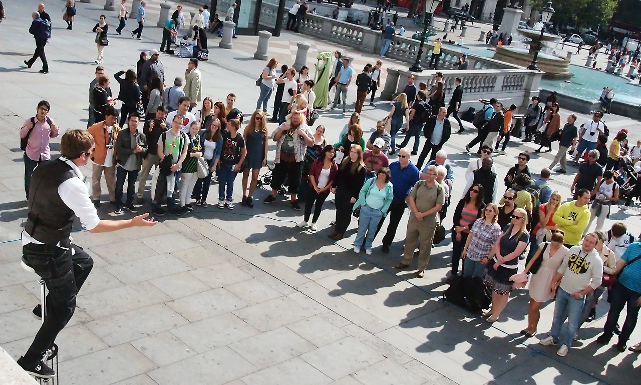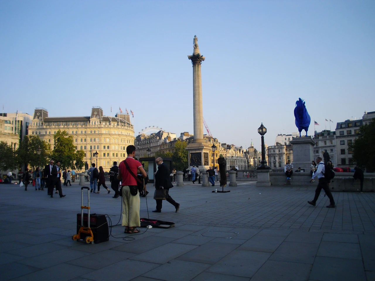 아쉽게도 두 번째 남자가수의 앞 모습이 찍힌 사진도 있지만, 우리는 그의 음악을 저번의 그녀의 음악과 다르게 뒤에 앉아서 들었다. 앞에서 듣고 싶어도, 그의 앞으로는 멈춰 서서 듣고 있는 청중이 없었기 때문에 머뭇거려졌다. 늦은 오후의 시간. 우리는 뮤지컬을 기다리는 남는 시간 그가 뒷모습으로 노래하는 이야기를 들었다. 그의 음악은 트라팔가 광장을 지나가는, 혹은 쉬고 있는 사람들의 풍경을 배경으로 한 음악이었다.