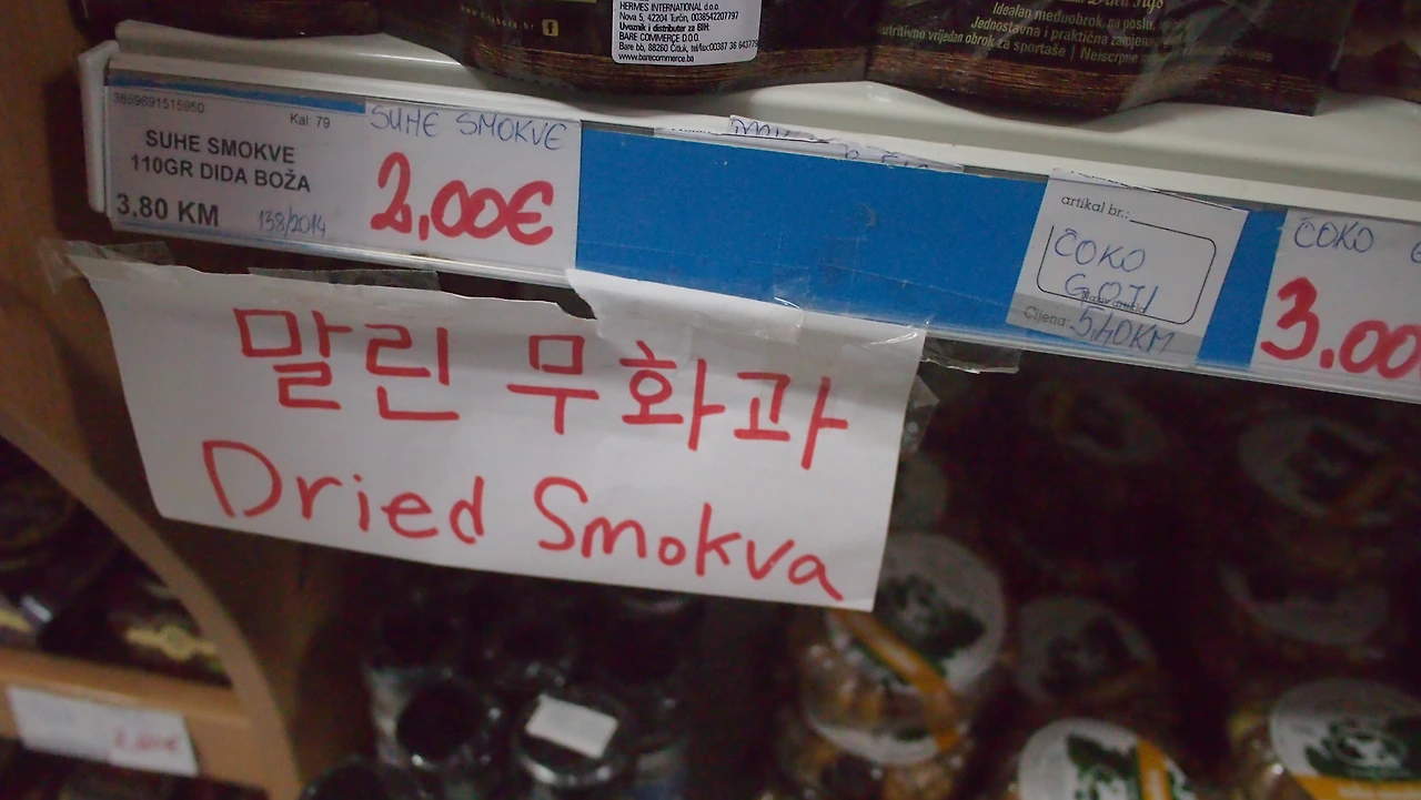 크로아티아의 도시 간 이동은 대부분 버스로 이뤄진다. 위치 상 대륙 끝에 두브로브니크가 있고, 얇고 기다란 크로아티아의 땅 특성상 모스타르를 지나야 스플리트로 갈 수 있었다. 물가도 싸겠다 그야말로 잠시 들러가던 도시였다. 중간 고속도로 휴게소를 들렀는데, 익숙한 한글이 보였다.