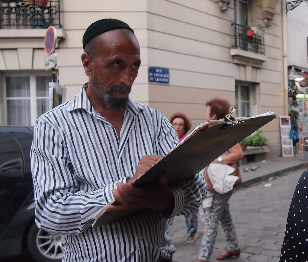 도화지를 들고 스스로 영업하러 온 화가였다. 초상화 그리기는 포기하던 차라 무시하고 지나치려는 순간.