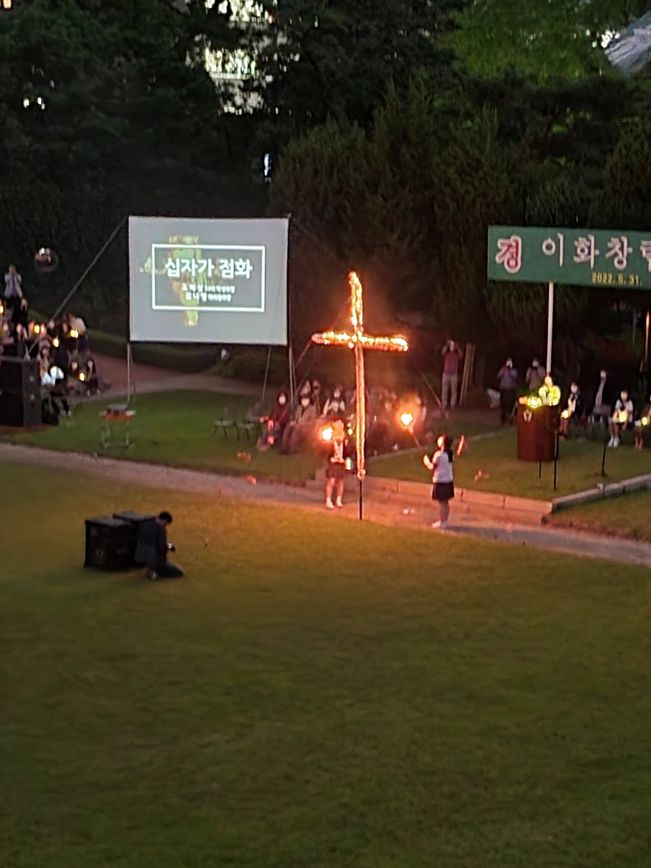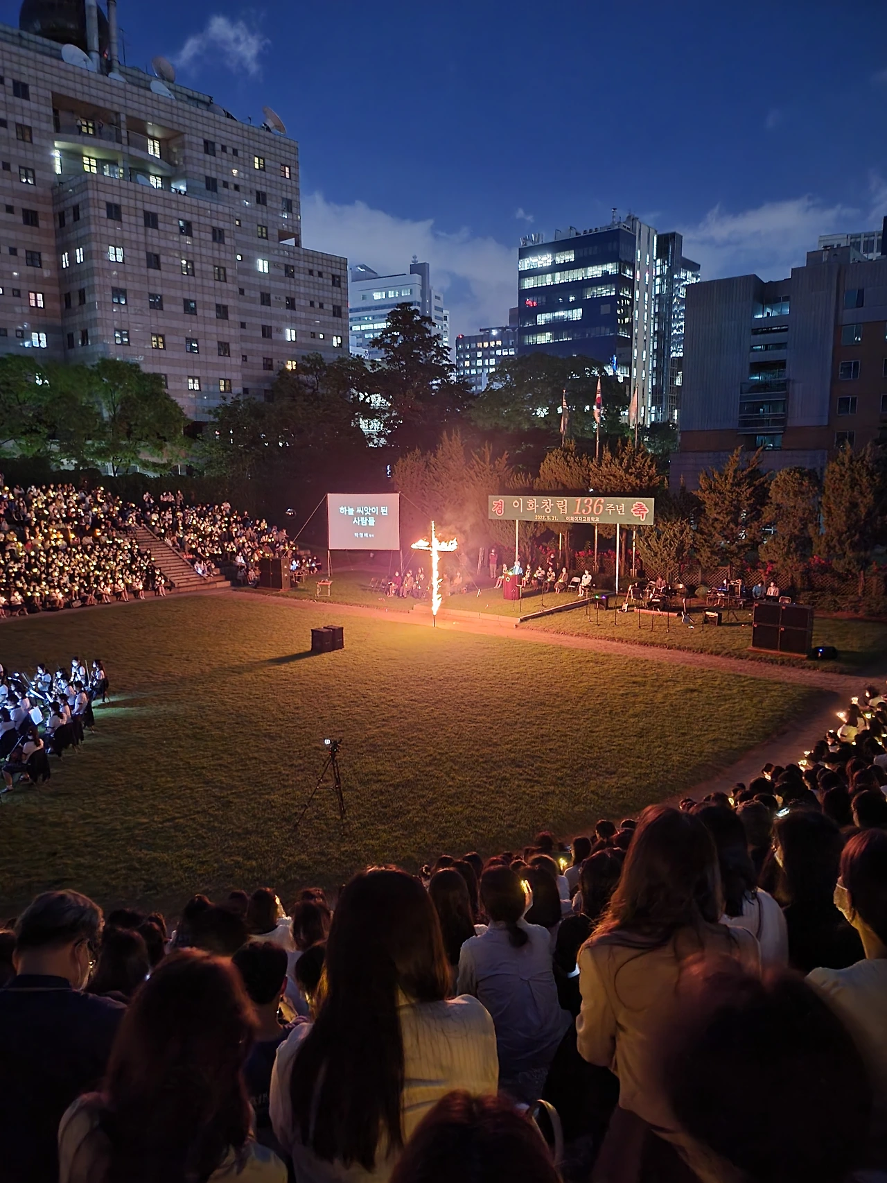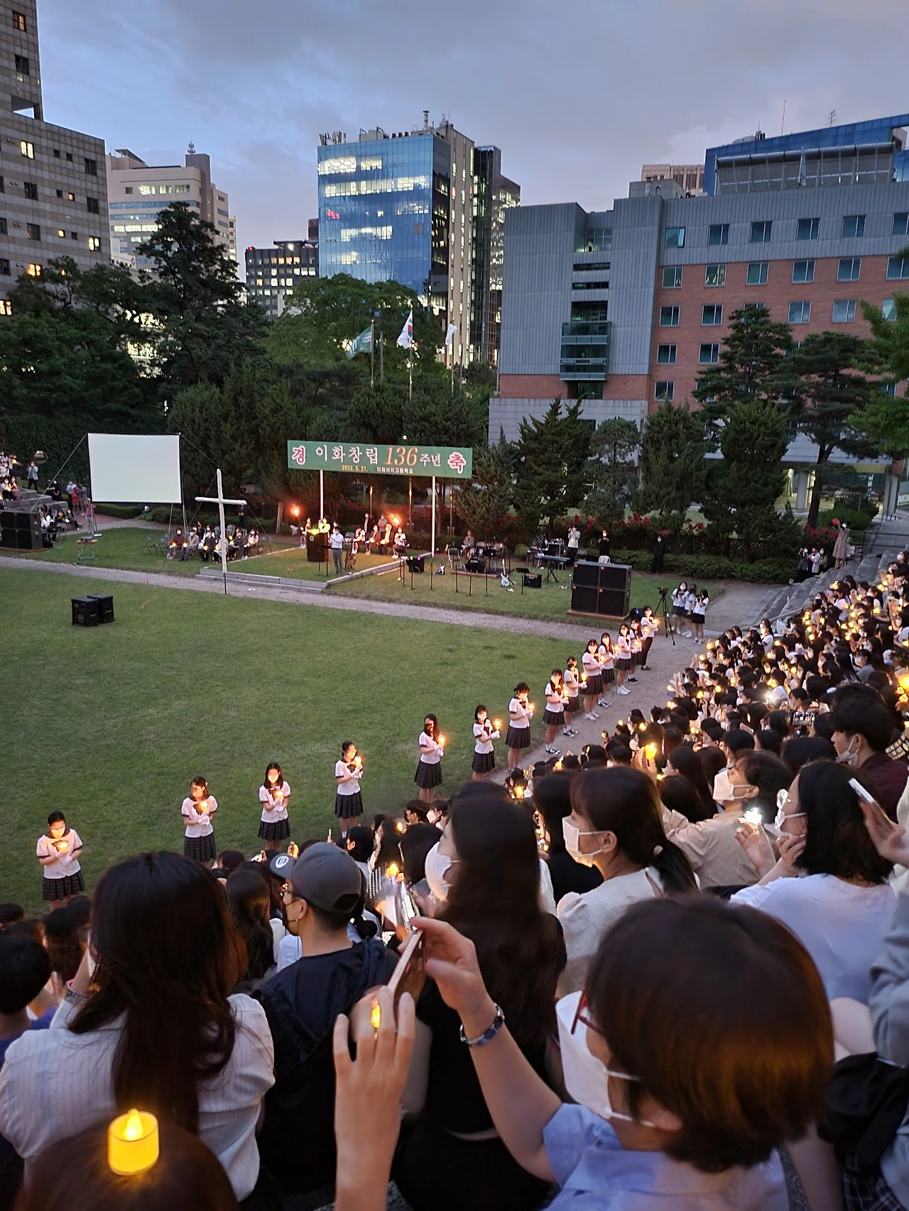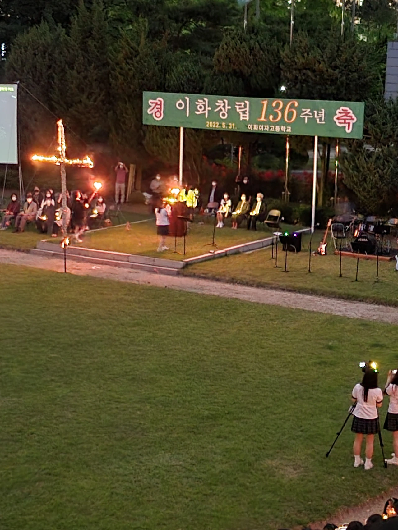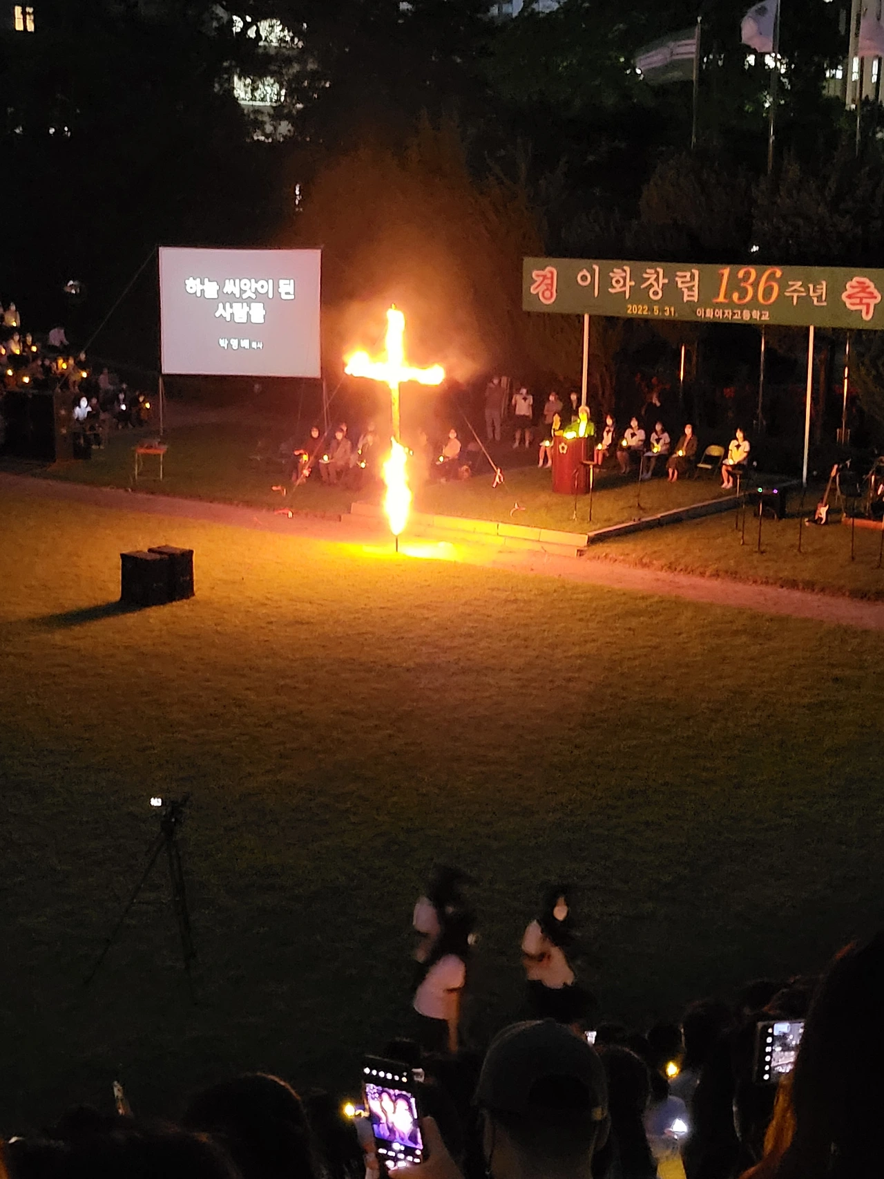 횃불예배.교가제창.선후배 재학생들.가족들.선생님들