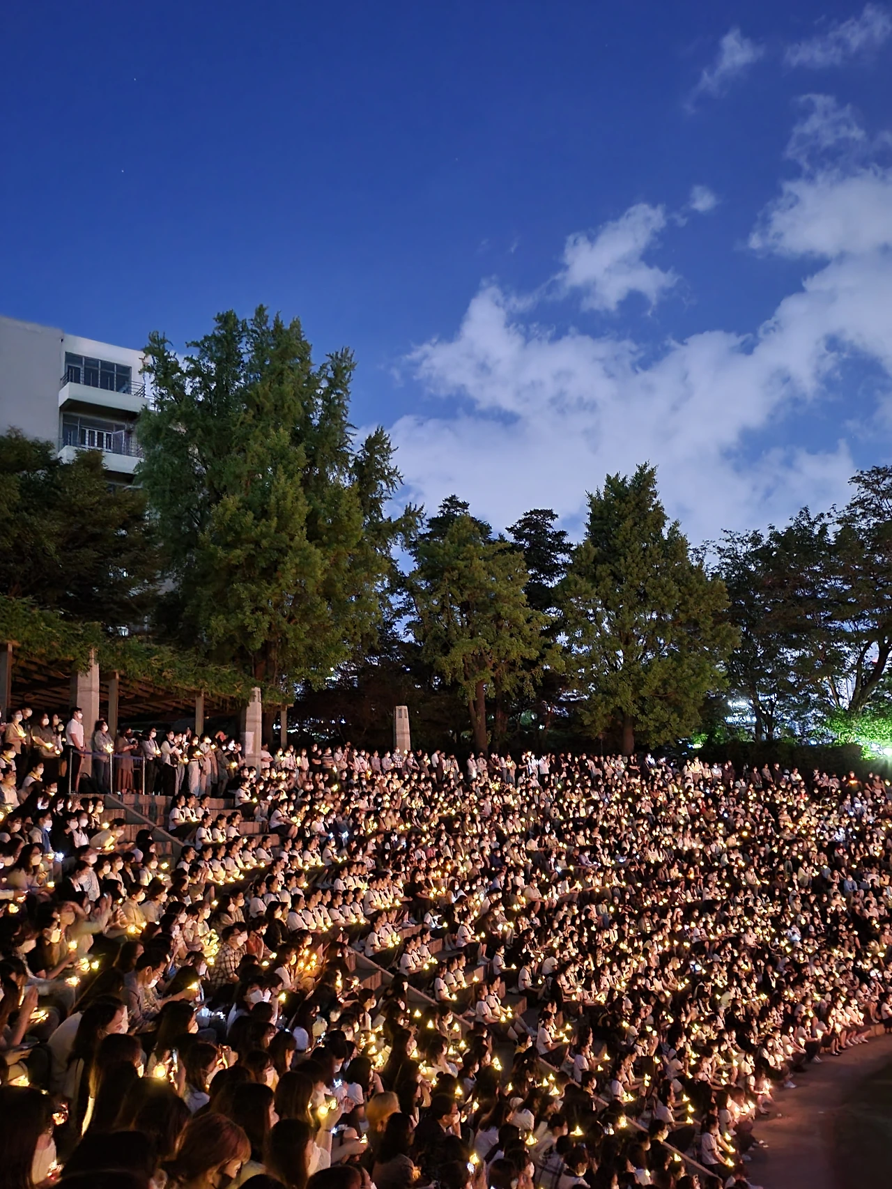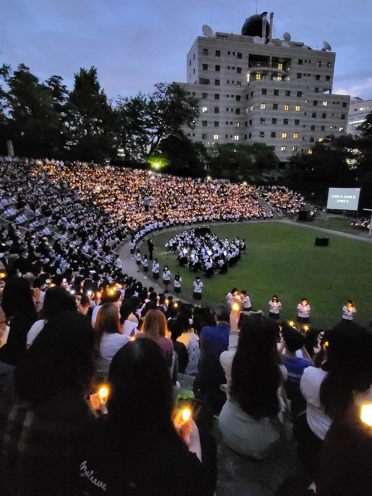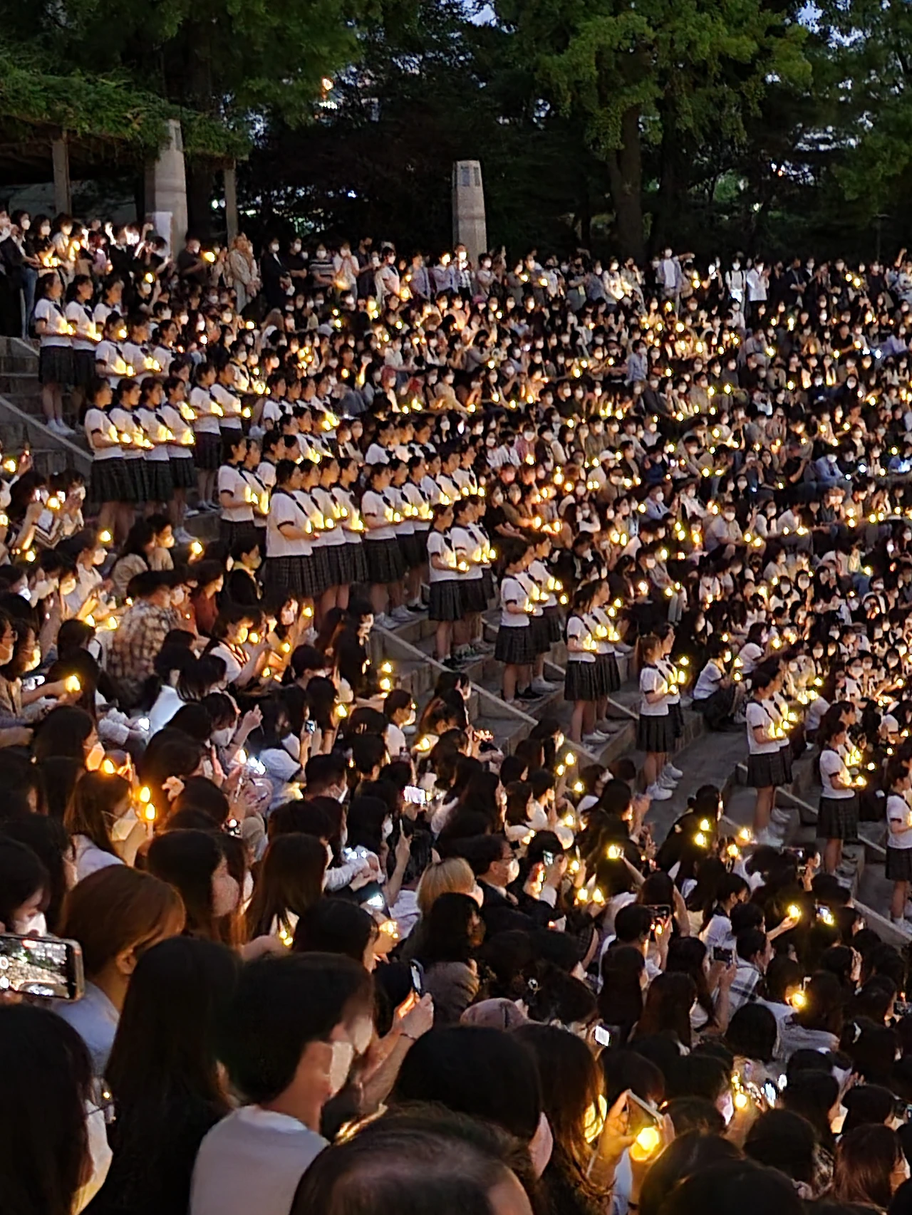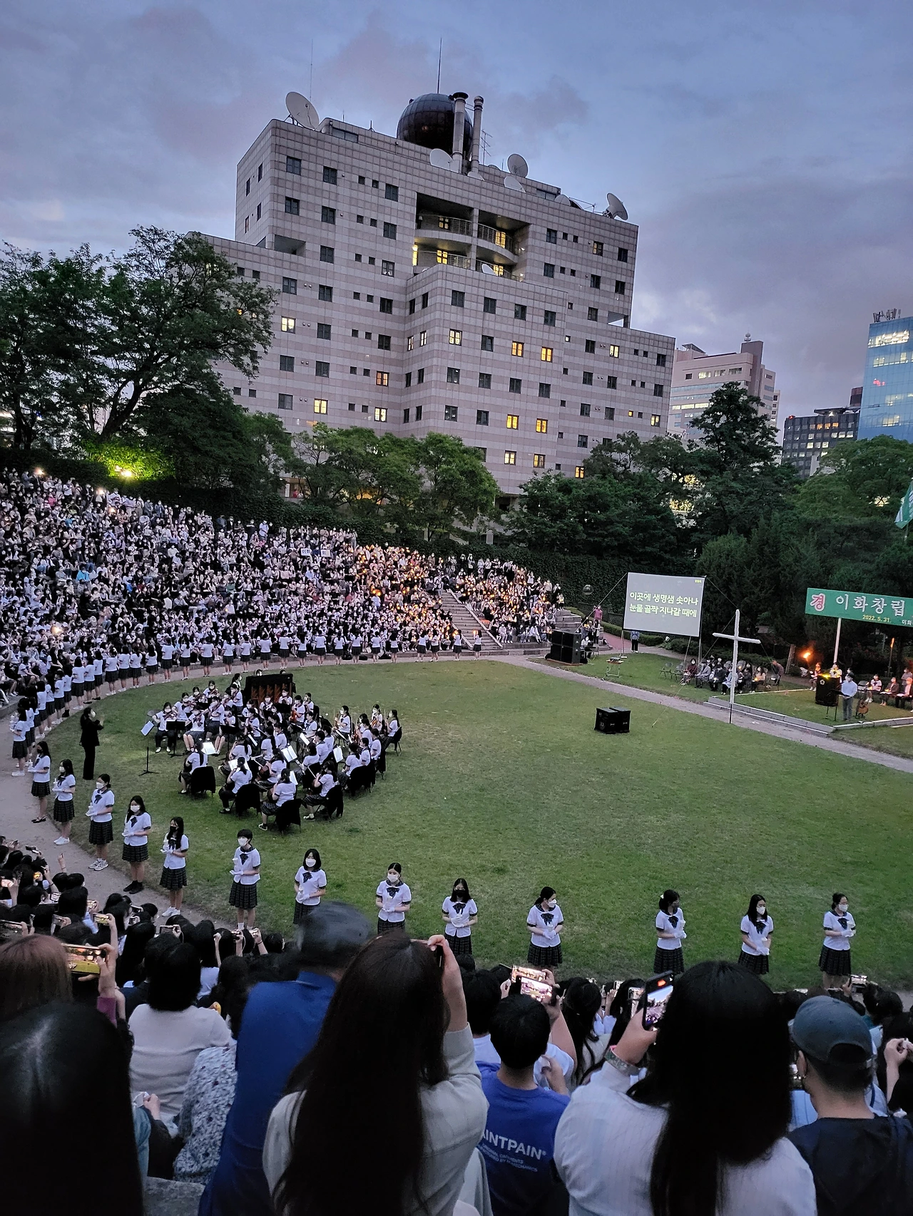 횃불예배.교가제창.선후배 재학생들.가족들.선생님들