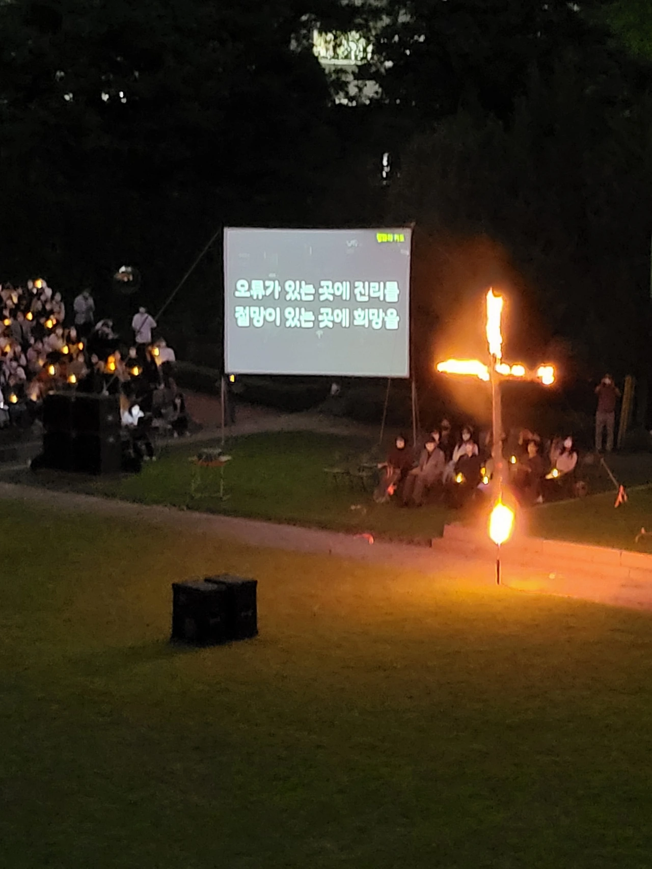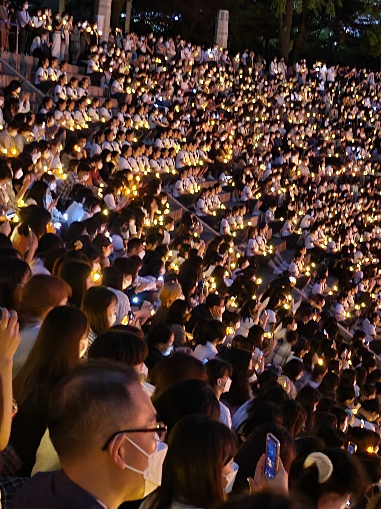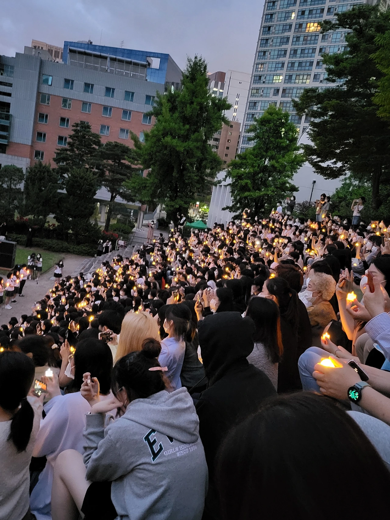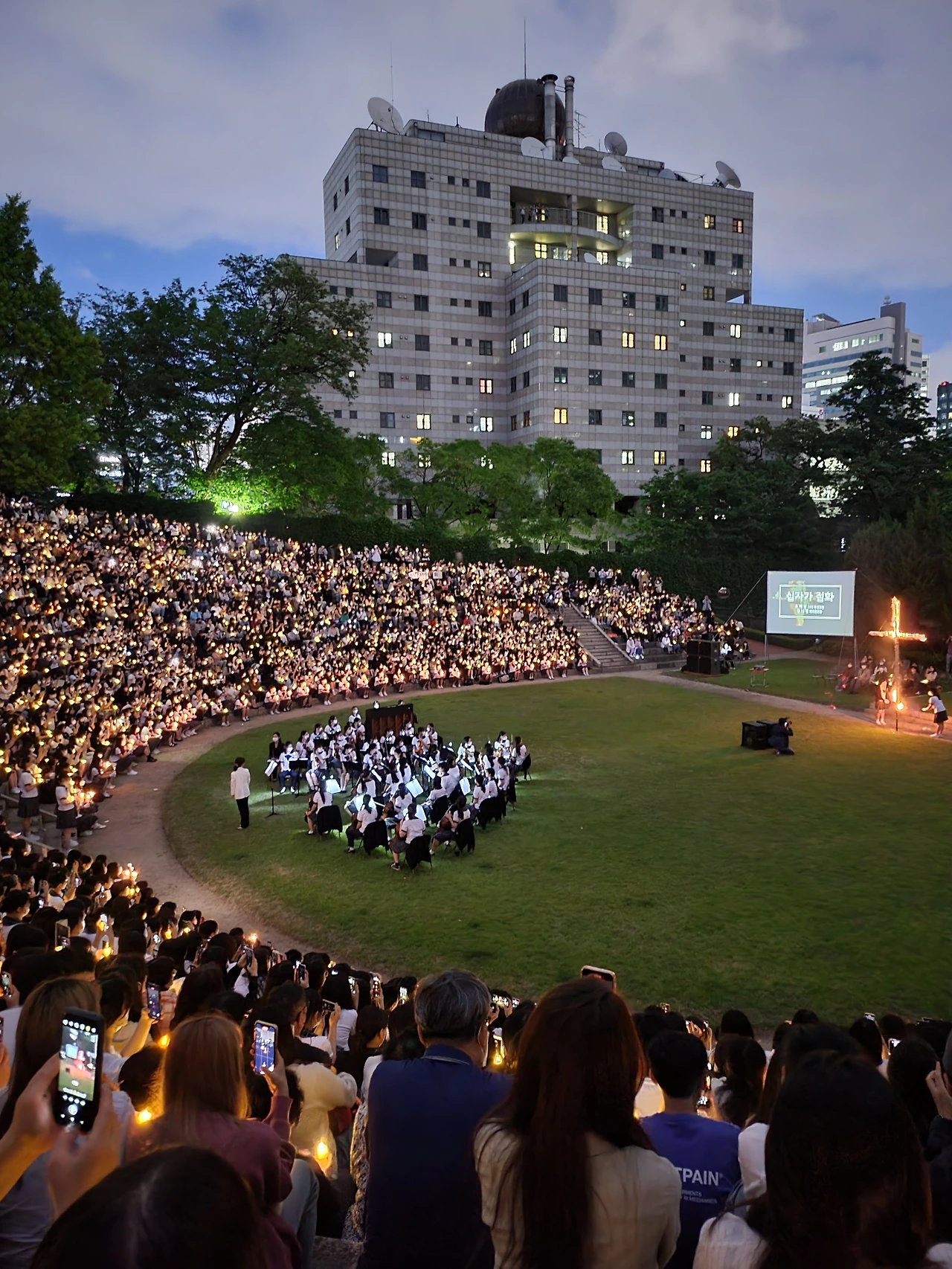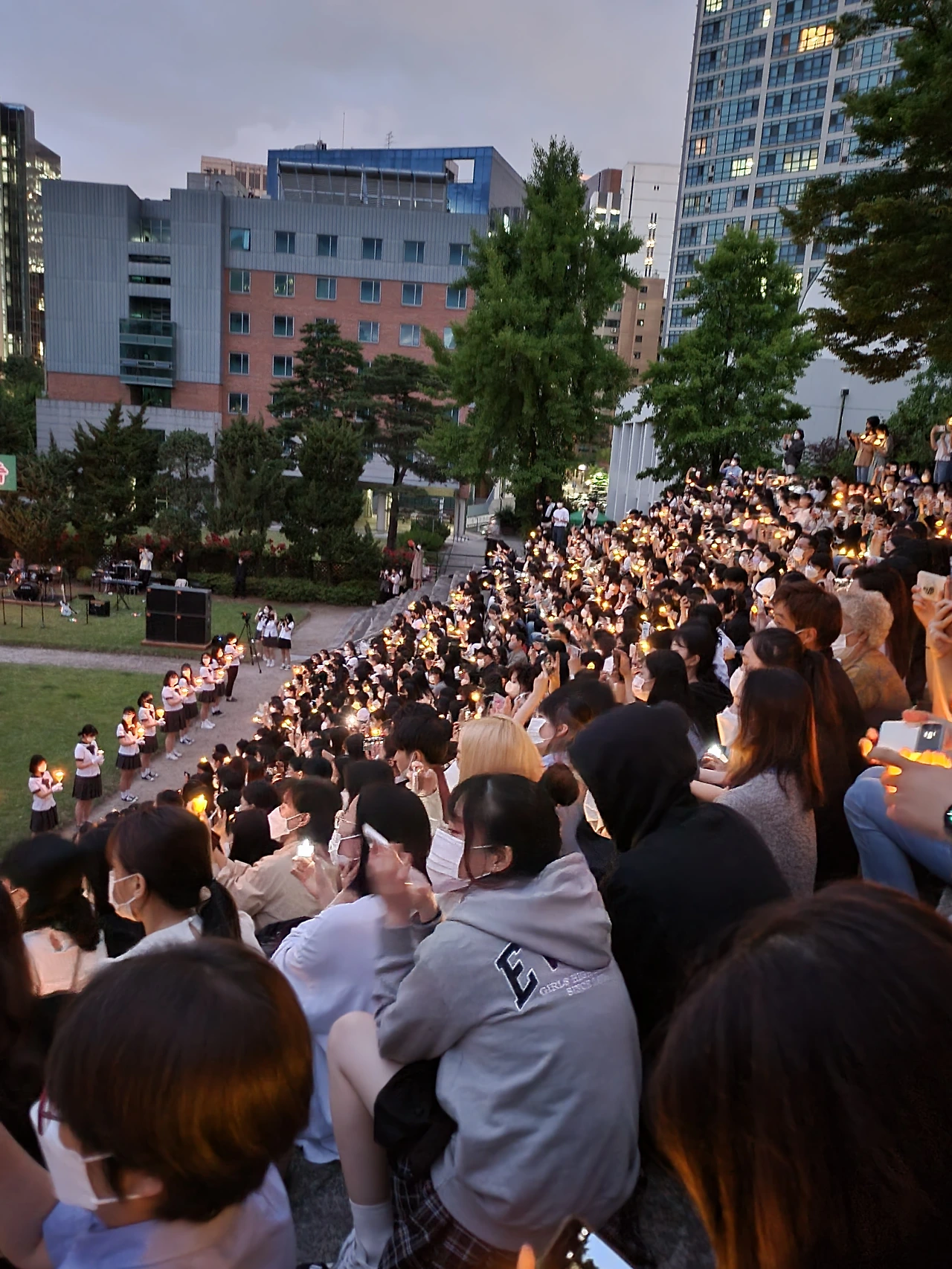 횃불예배.교가제창.선후배 재학생들.가족들.선생님들