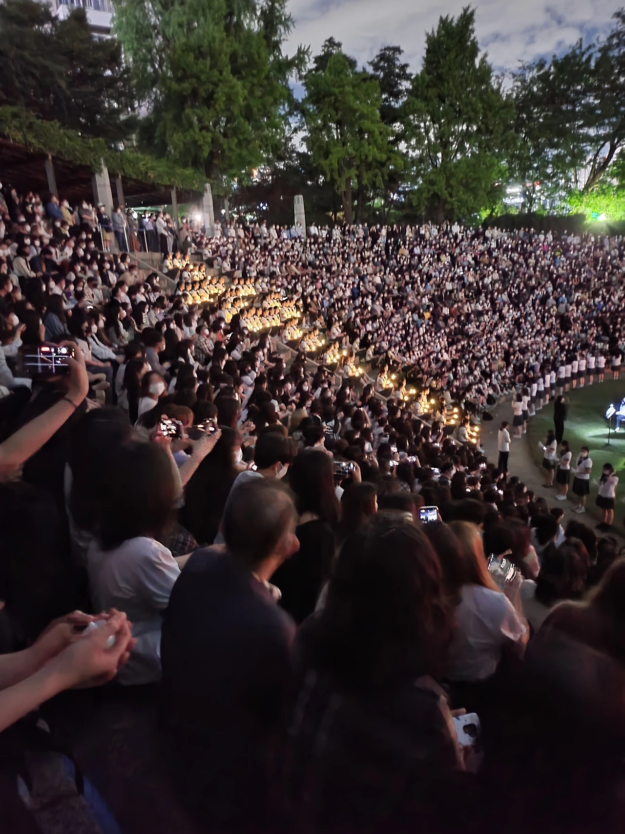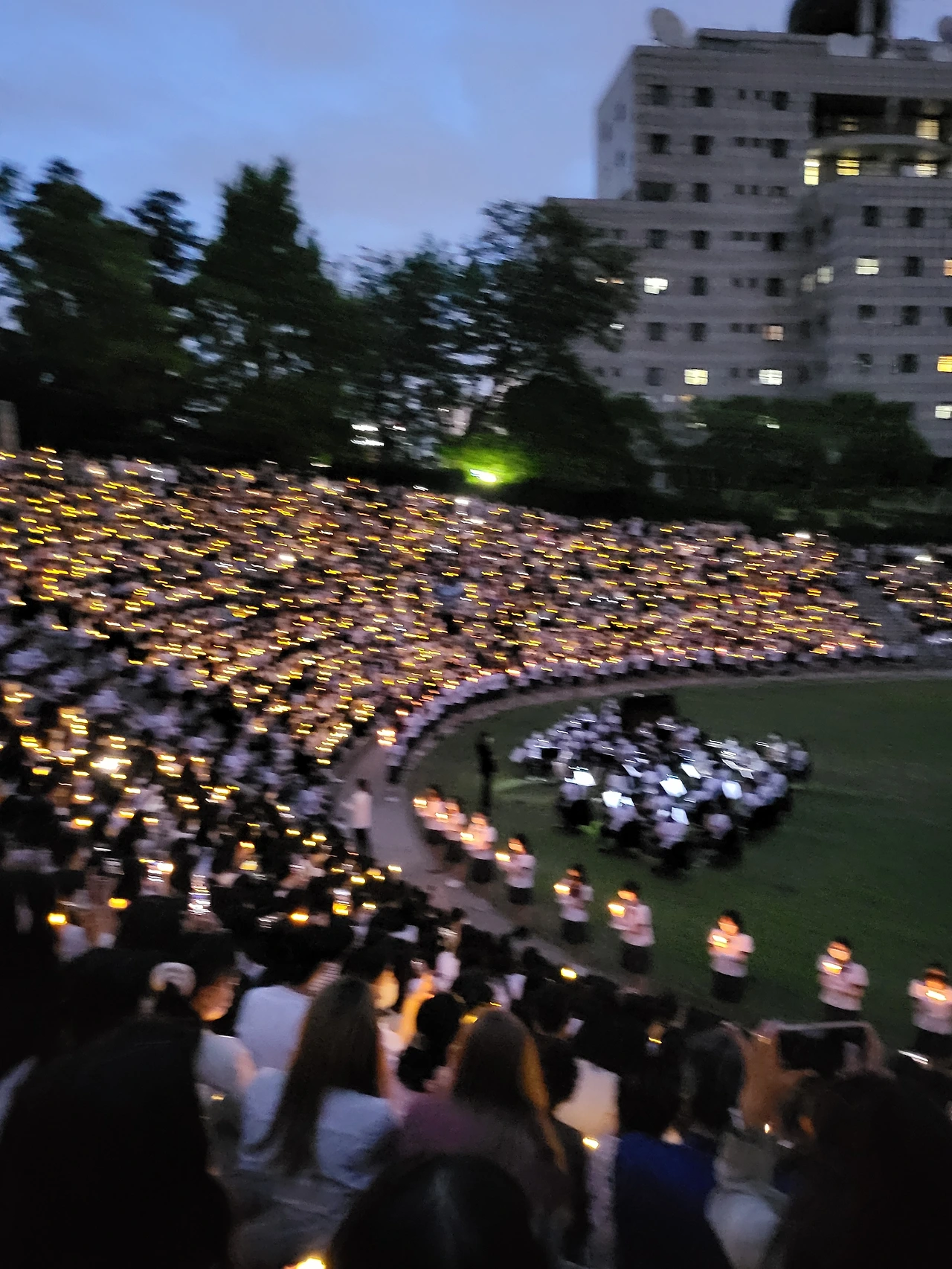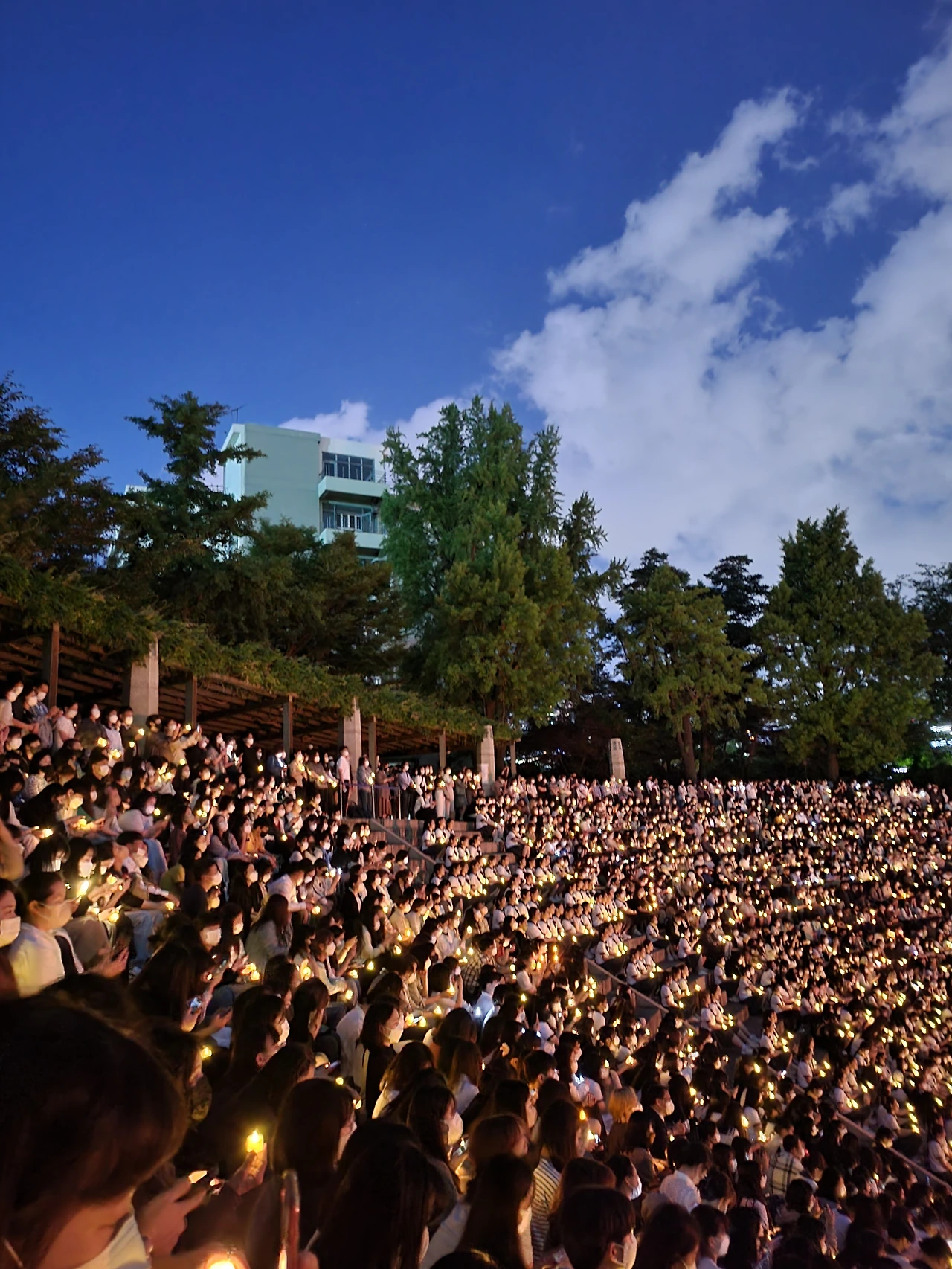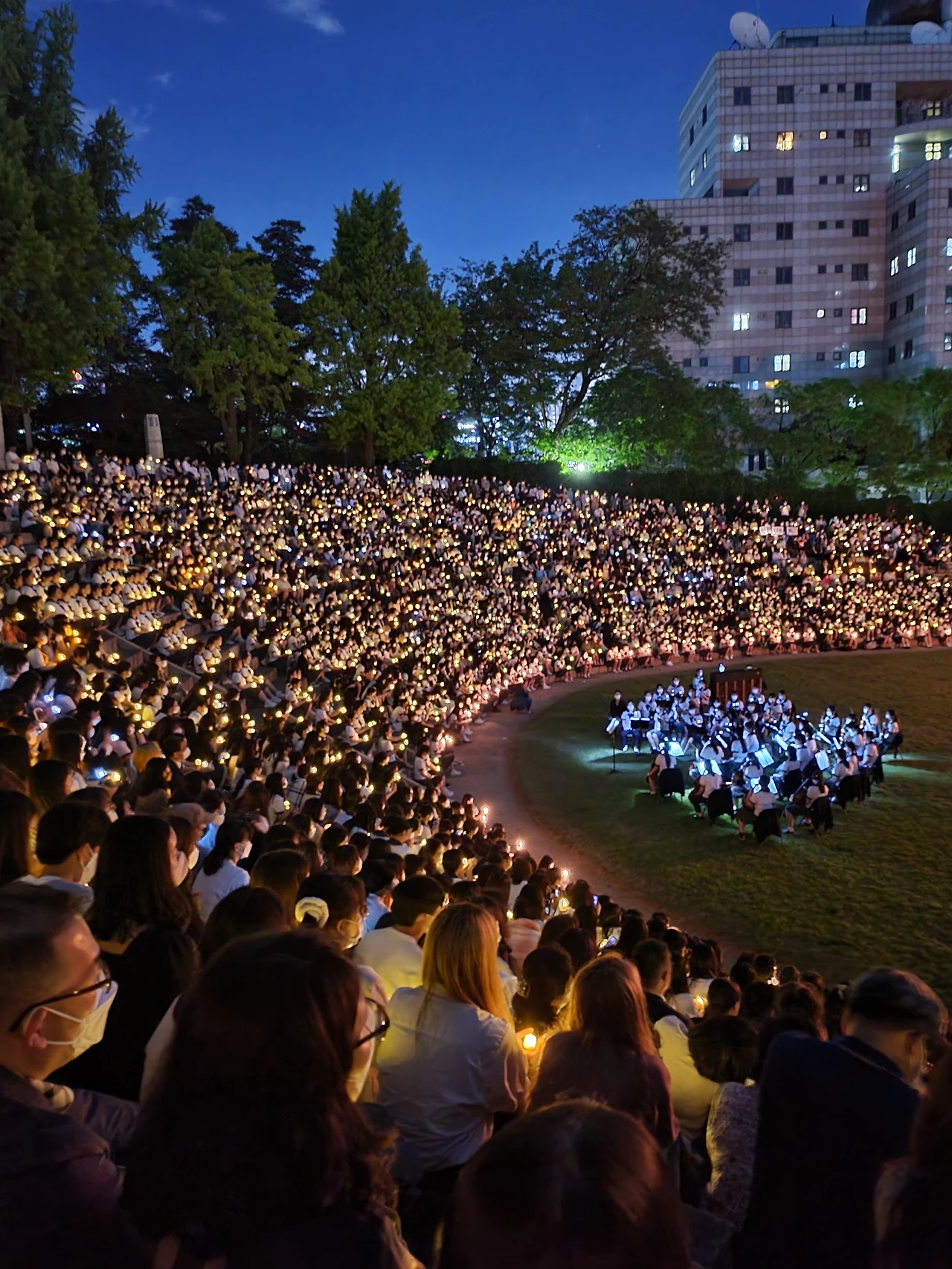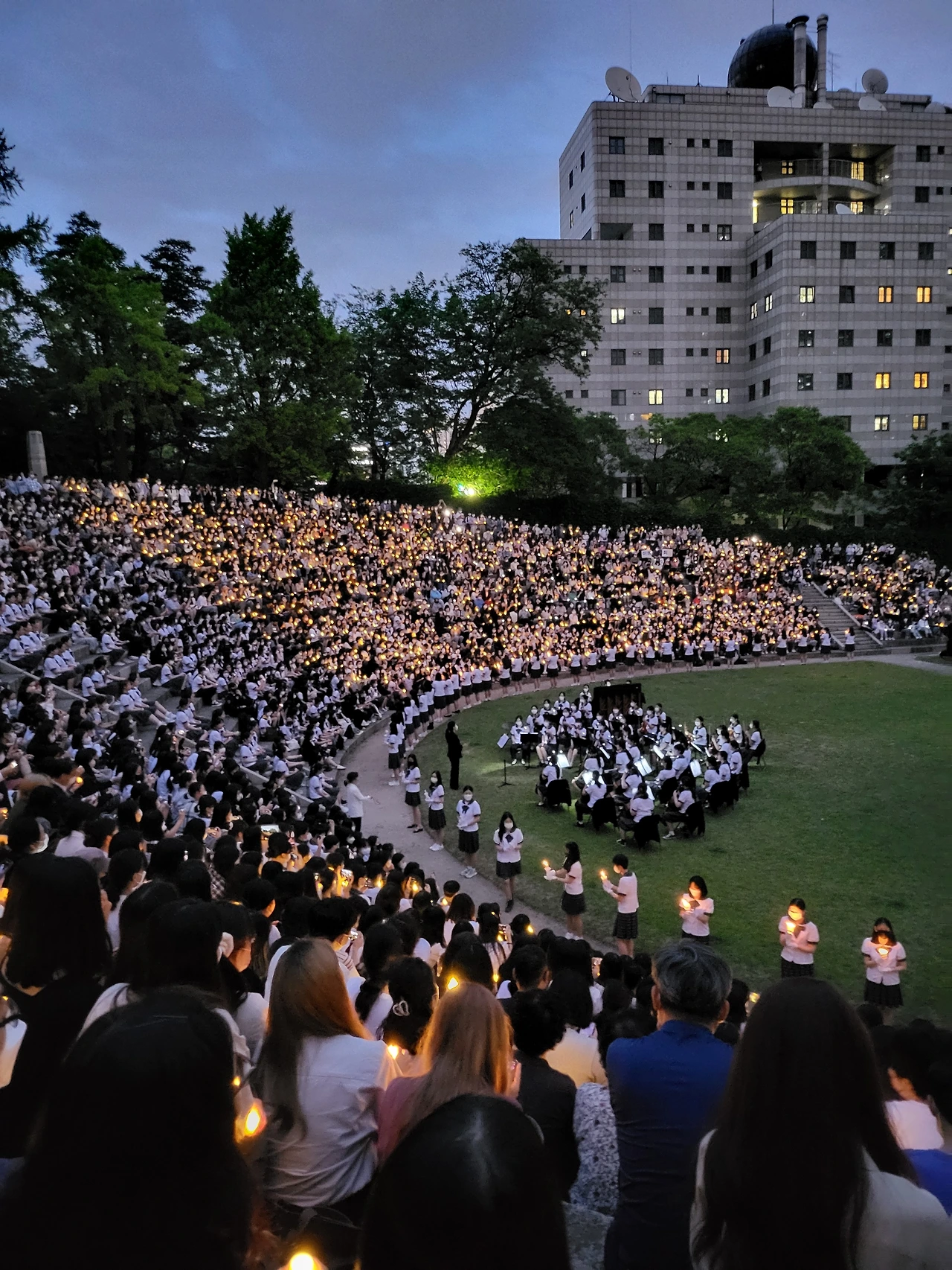 횃불예배.교가제창.선후배 재학생들.가족들.선생님들