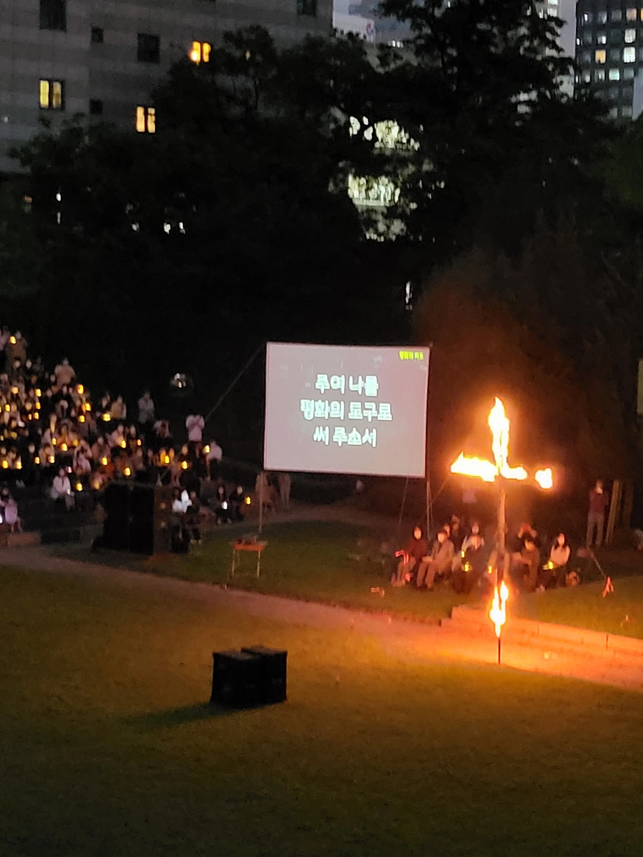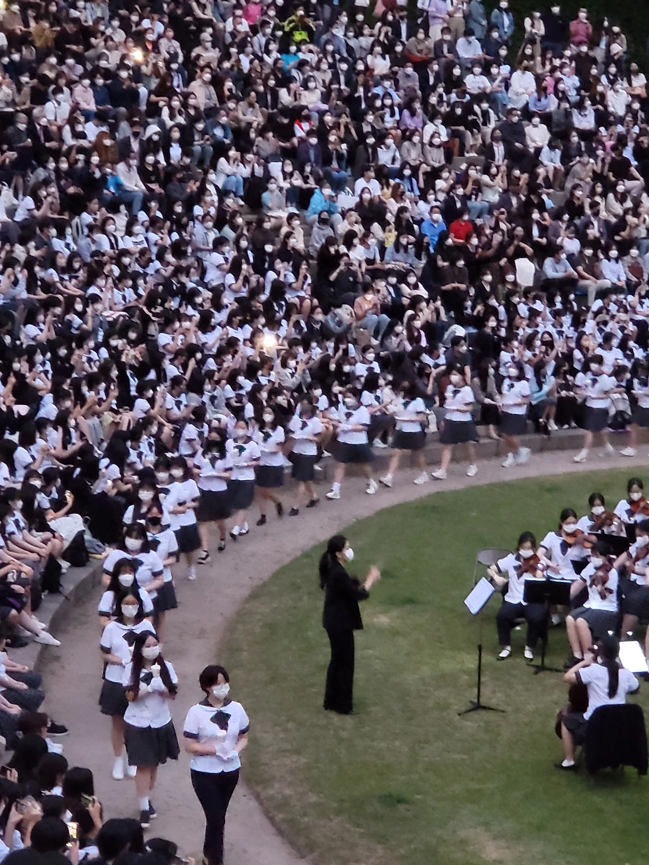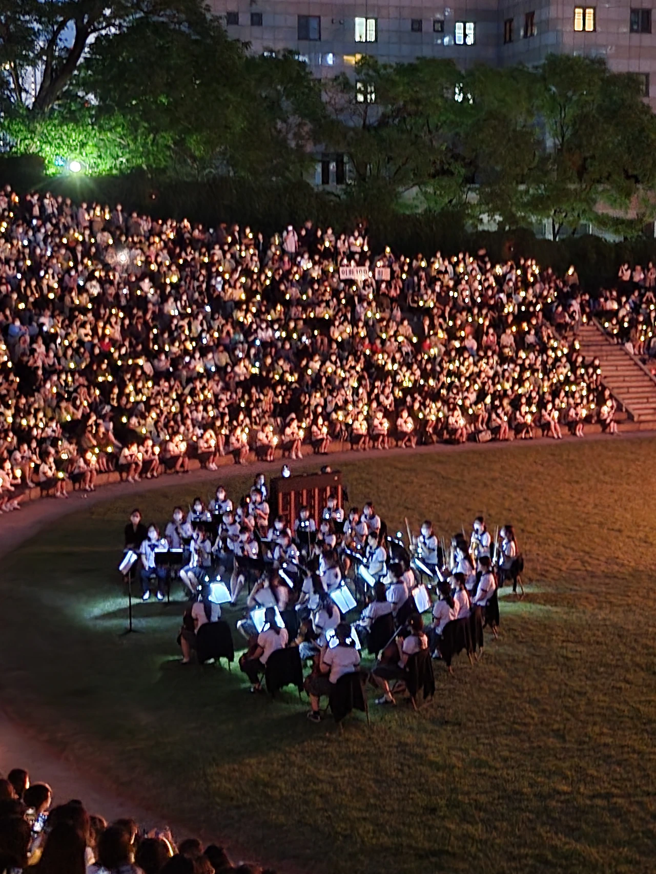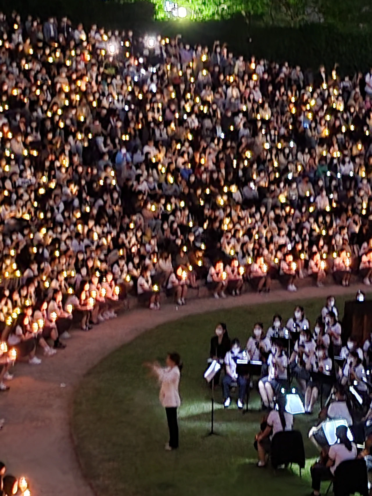 횃불예배.교가제창.선후배 재학생들.가족들.선생님들