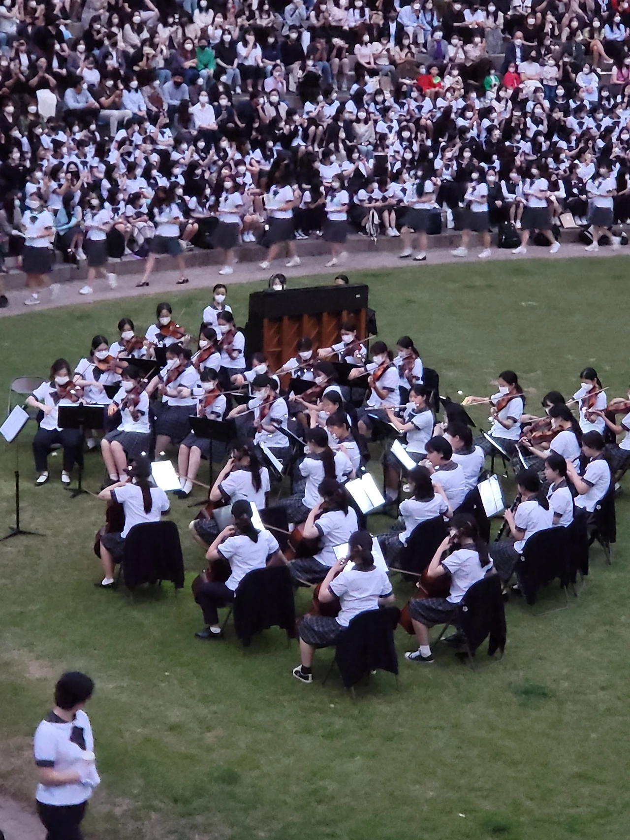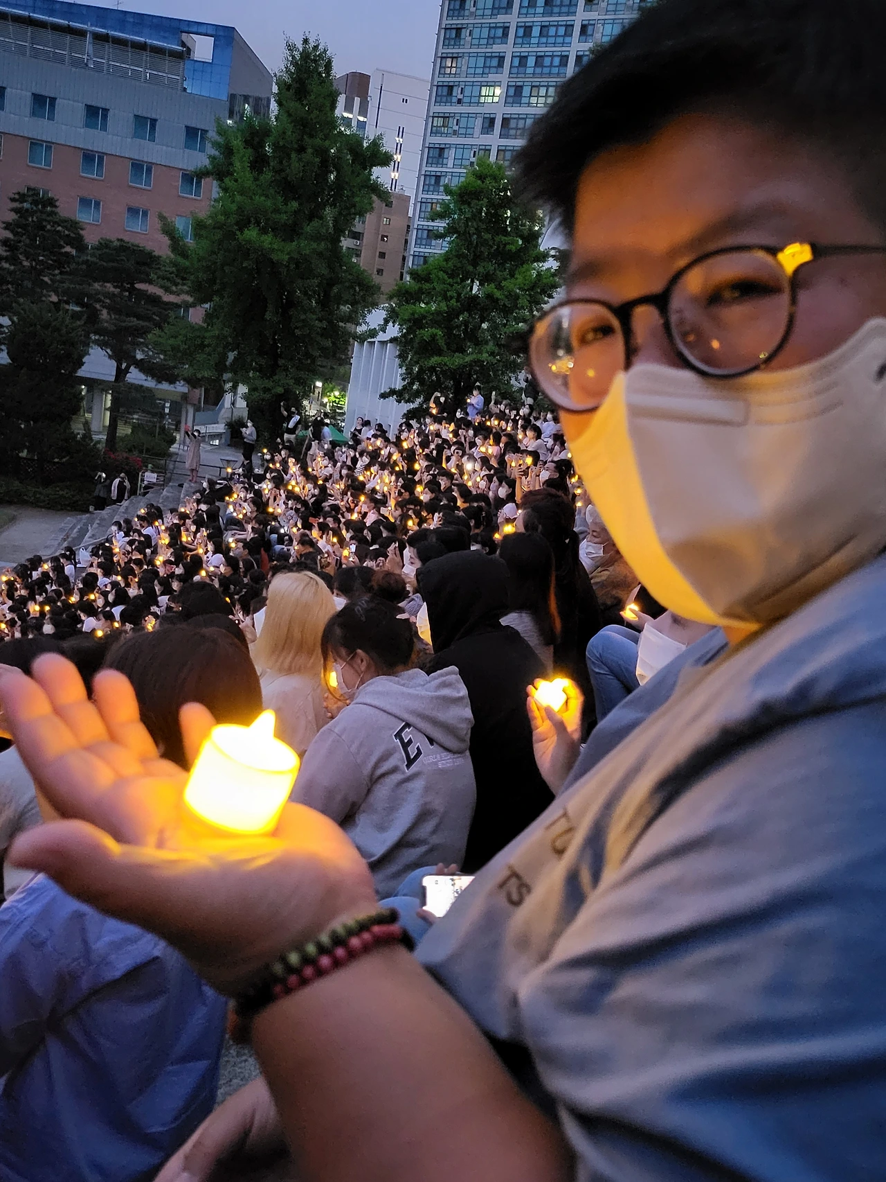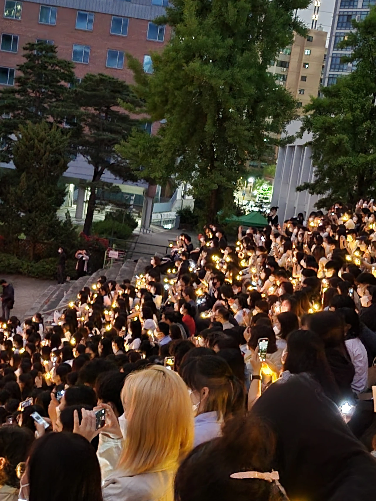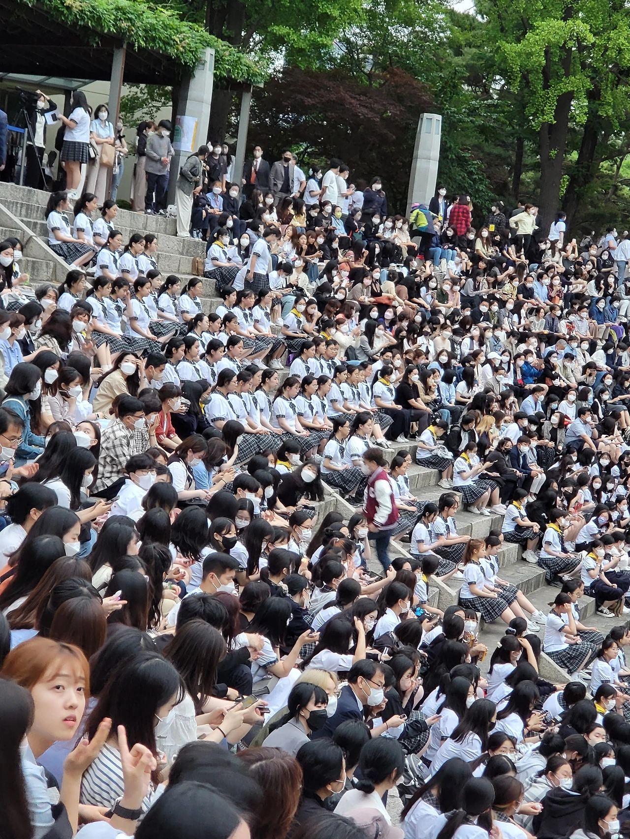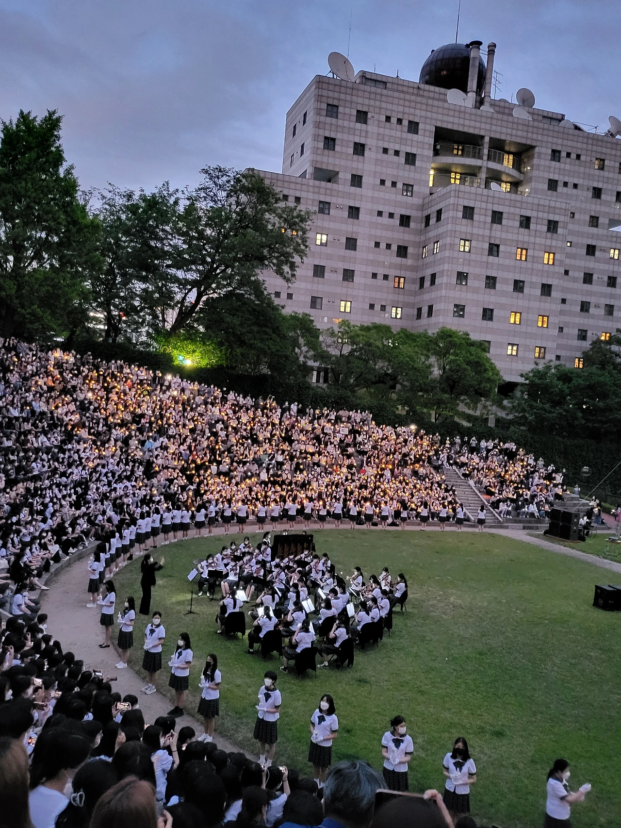횃불예배.교가제창.선후배 재학생들.가족들.선생님들