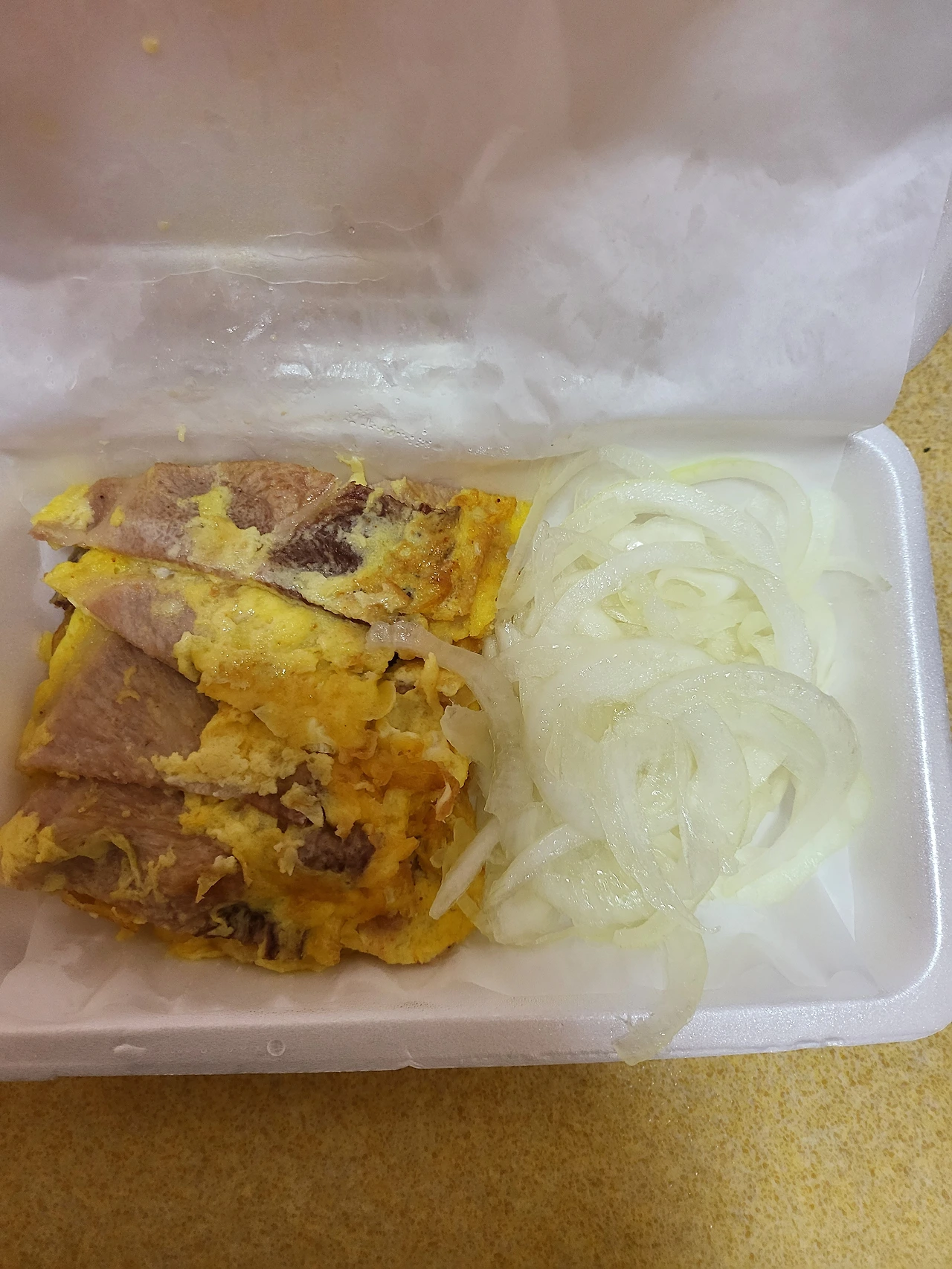 마약 육전-돼지고기 육전에 양파 곁들임