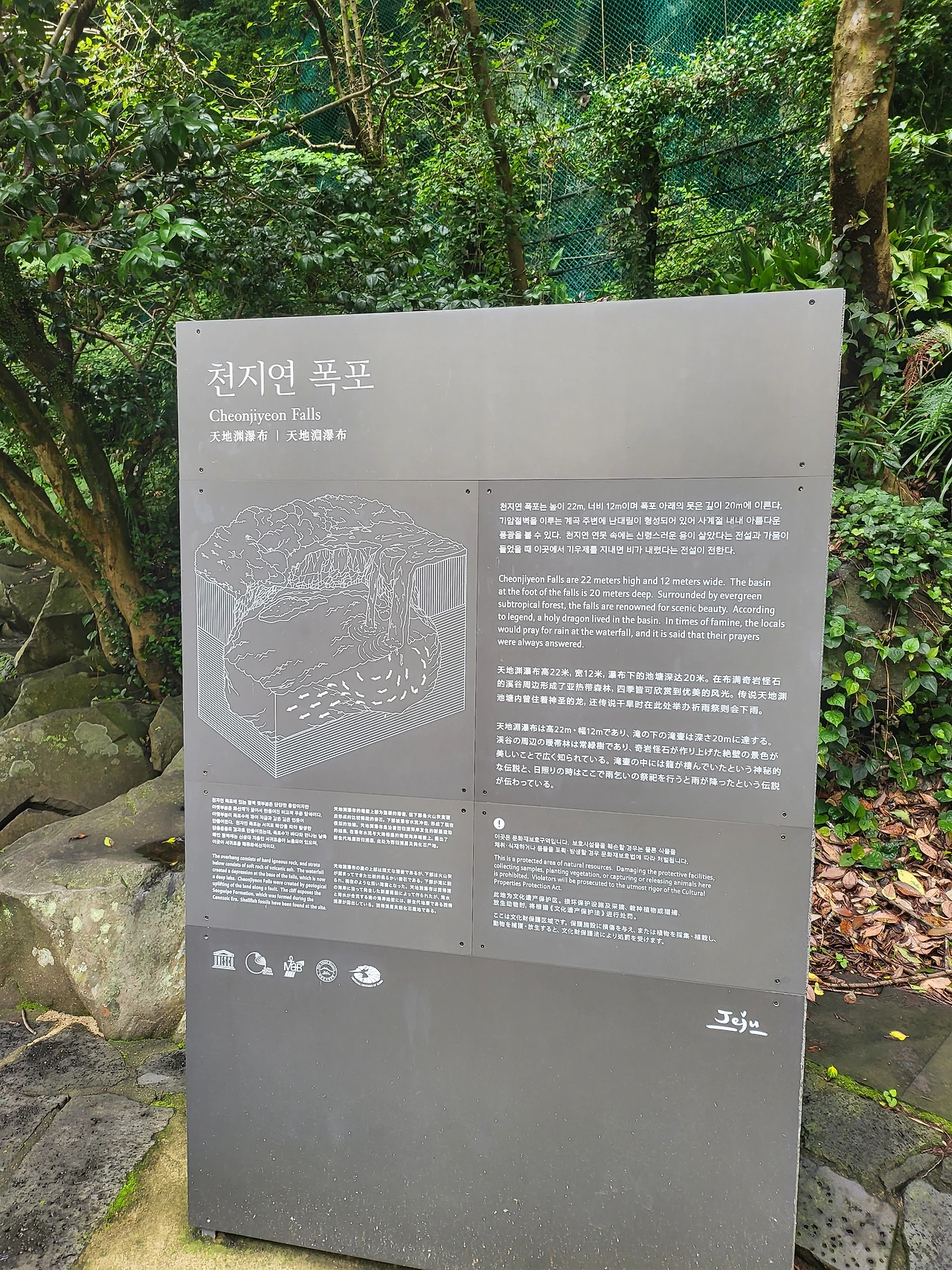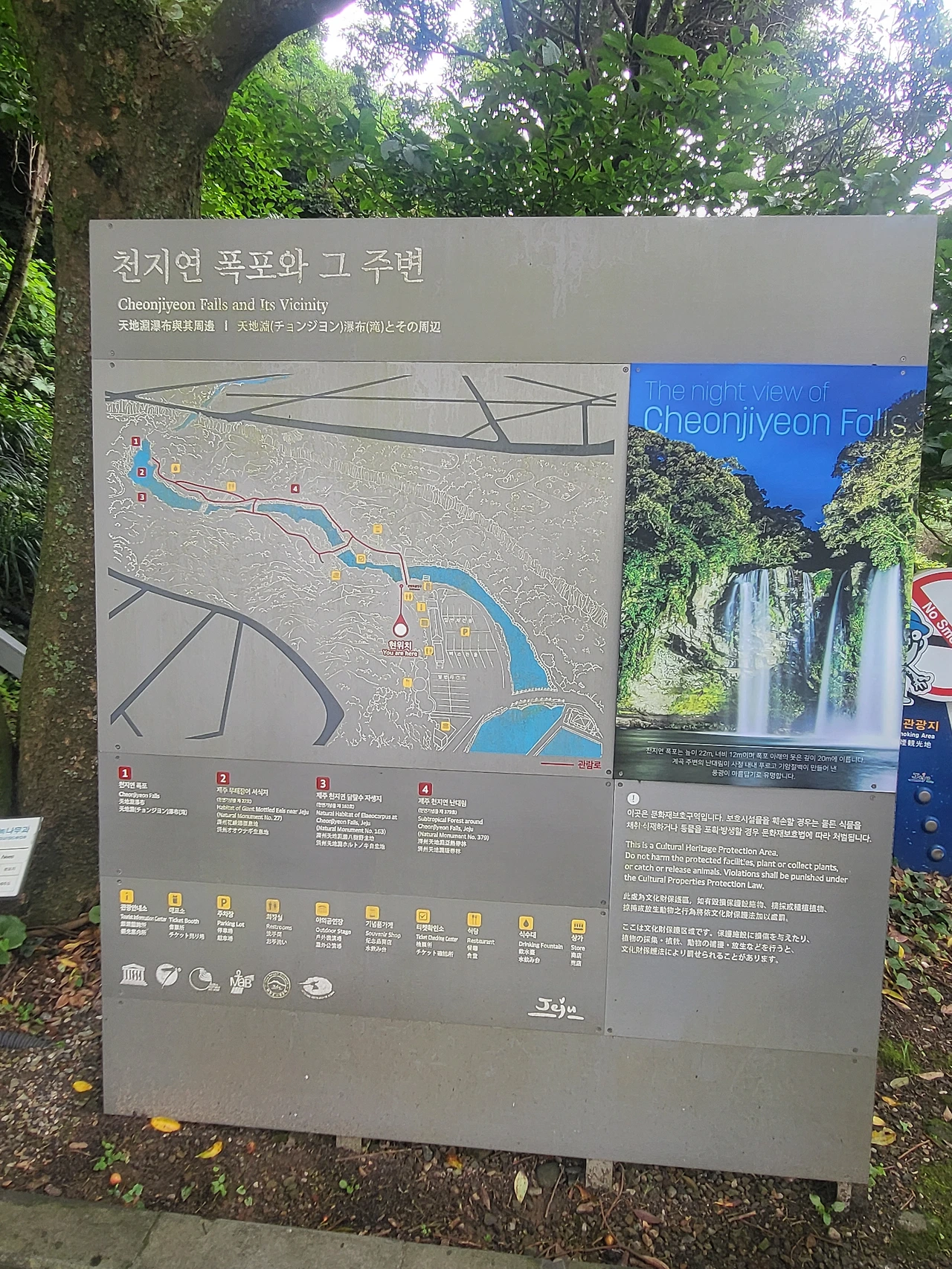 천지연 폭포를 갔다가 비를 맞았다.