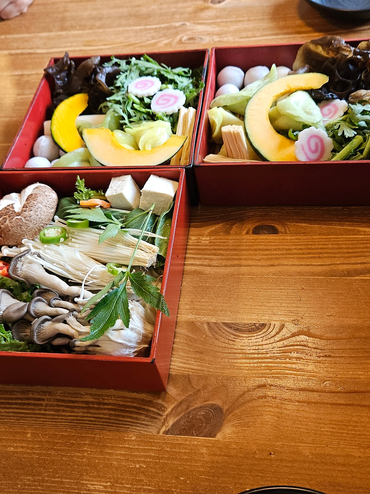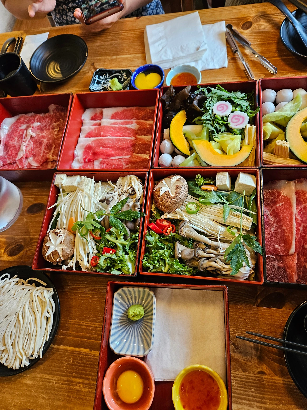 사각으로 된 도시락 통에 담긴 다양한 메뉴들