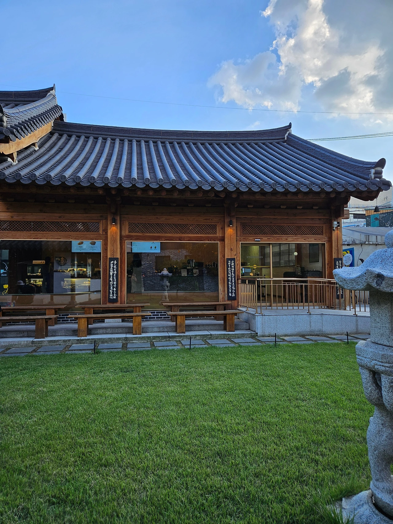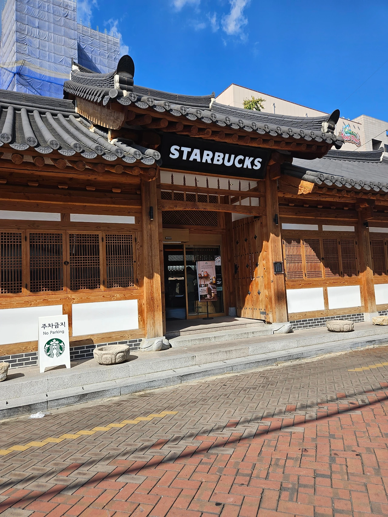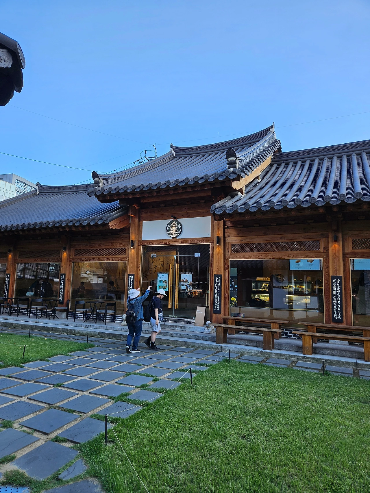 한옥 두채가 마주보고 있는 공간에 스타벅스가 자리를 잡고