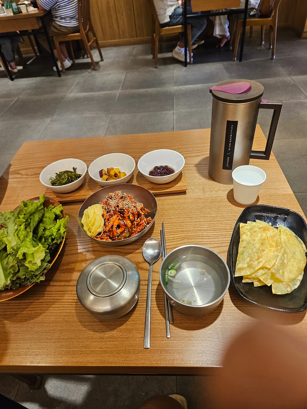 재첩국.납작만두에 국수까지 비벼먹으니 별미였다.