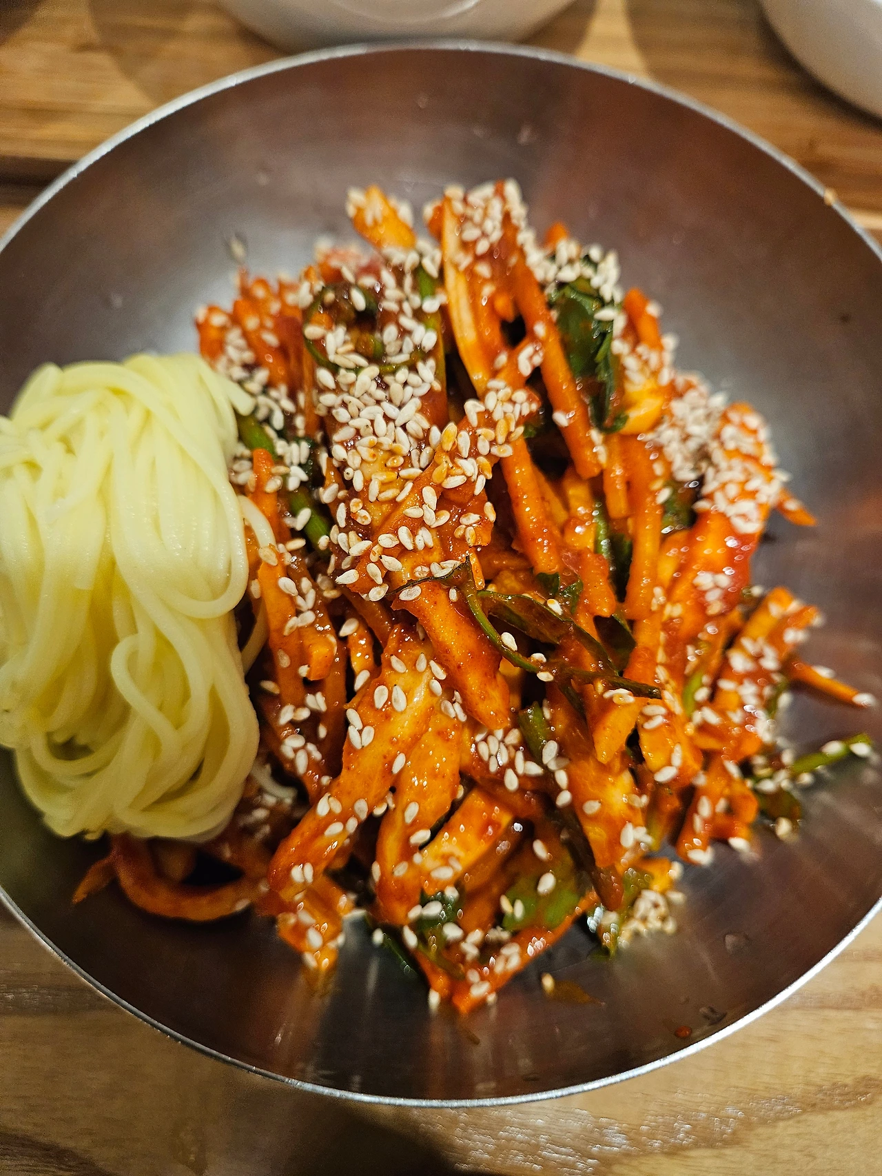 -내륙에 있는 대구에서 숙회를 한 오징어.고둥등을 새콤매콤 하게 무쳐서 먹는 별미로