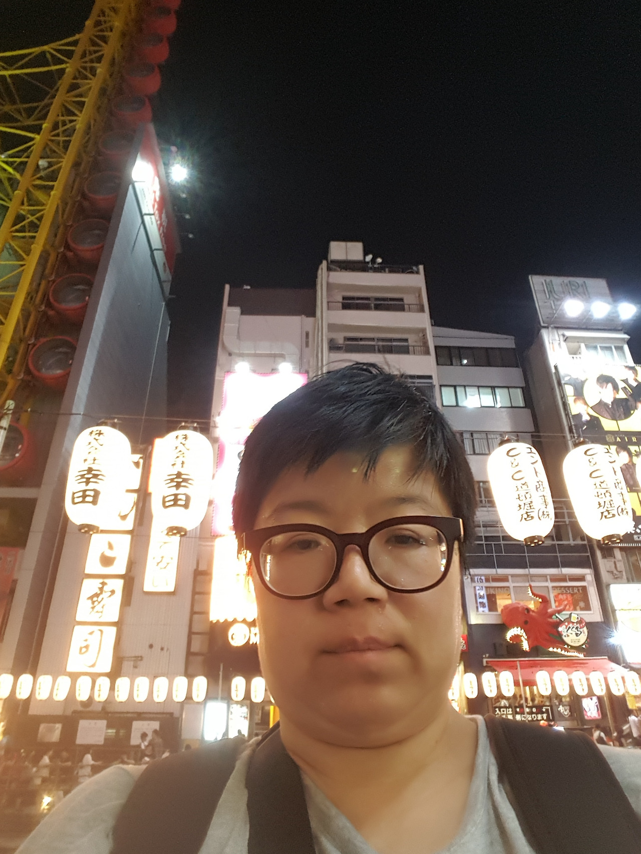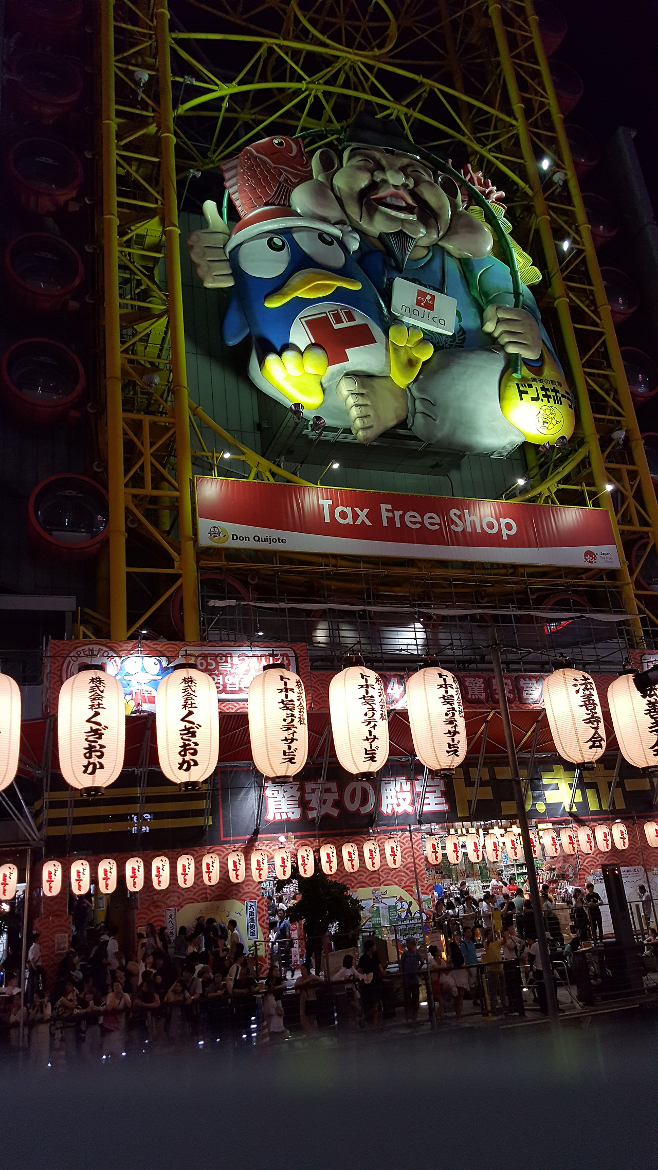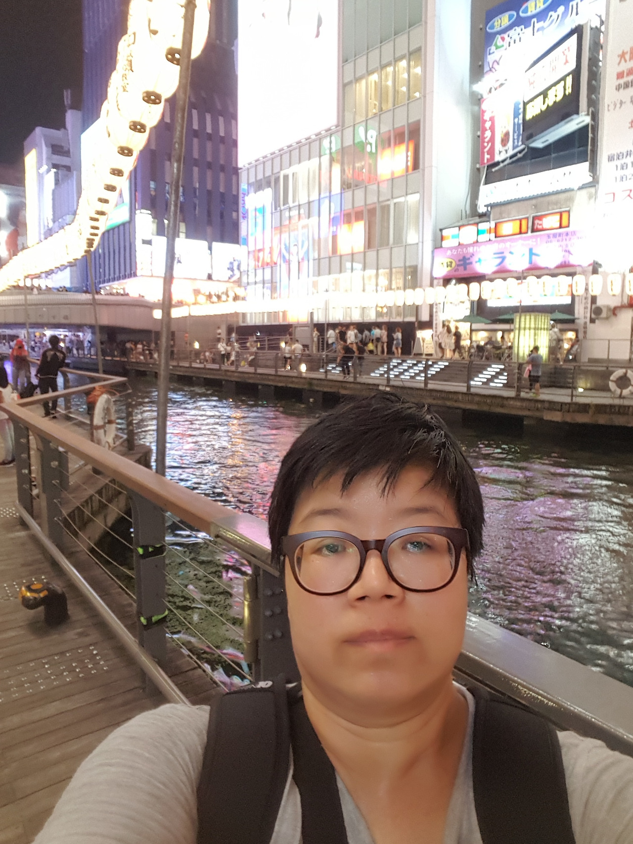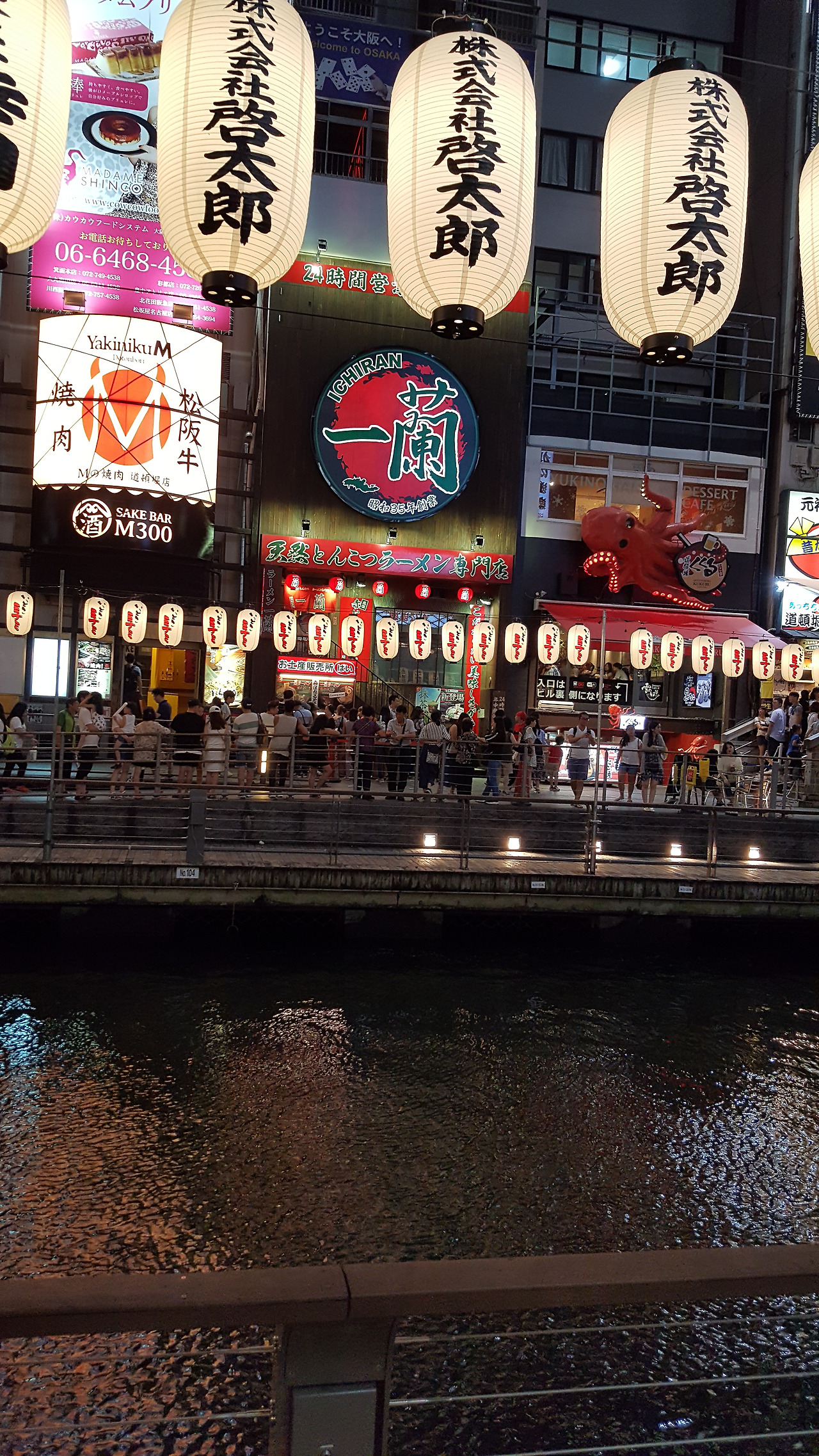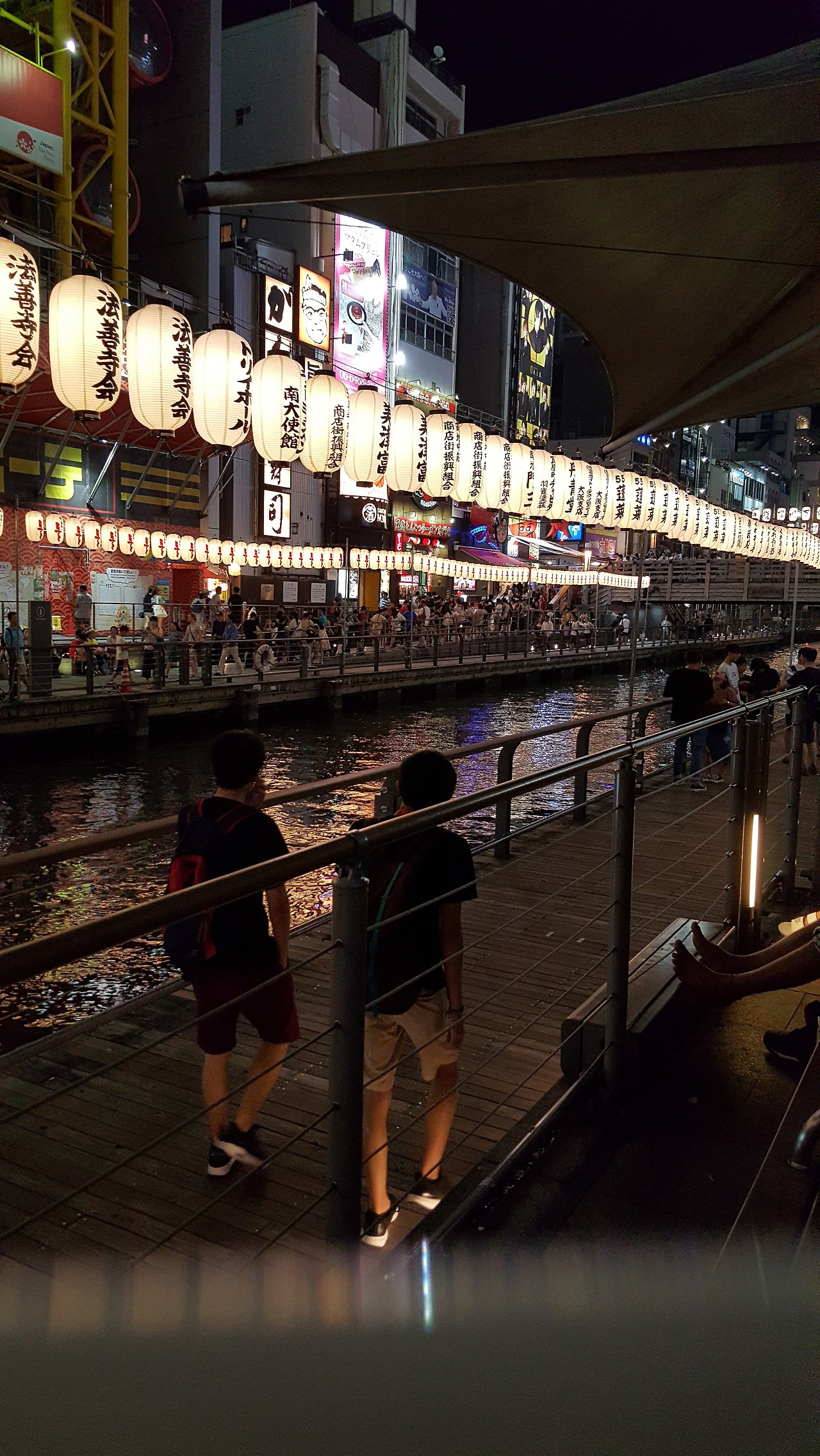 칠월 칠석을 맞이하여 소원을 적은 종이를 대나무에 걸고 두고 도톤보리에도 많은 등이 달려있다.