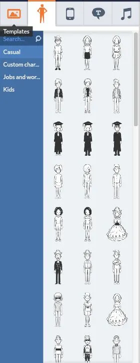 스크롤바를 내려야 할 정도로 다양한 캐릭터를 제공하고 있다. 만드는 영상의 특징에 따라서 캐릭터를 고르고 영상을 제작할 수 있다.