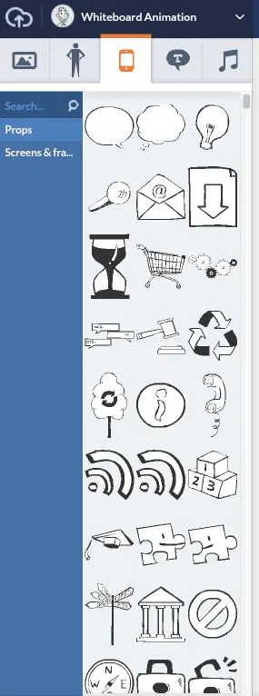 검색을 통해서 쉽게 소품 이미지를 찾아서 화면을 구성할 수 있다. 필요한 이미지는 추가하여 다양하게 영상을 제작하는 것이 가능하다.