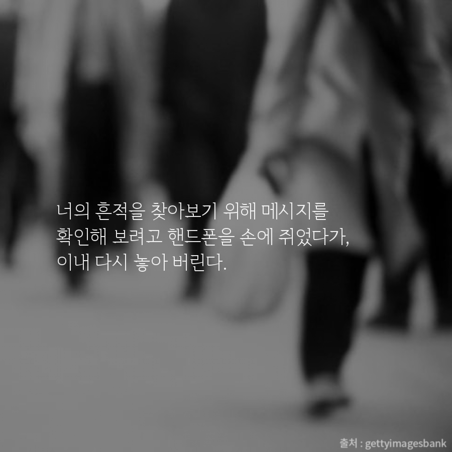 너의 흔적을 찾아보기 위해 메시지를 확인해 보려고 핸드폰을 손에 쥐었다가, 이내 다시 놓아 버린다.