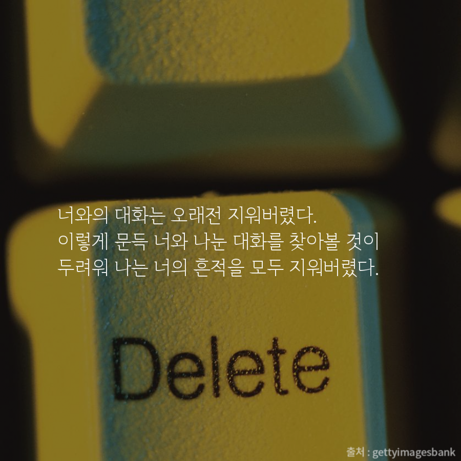 너와의 대화는 오래전 지워버렸다. 이렇게 문득 너와 나눈 대화를 찾아볼 것이 두려워 나는 너의 흔적을 모두 지워버렸다.