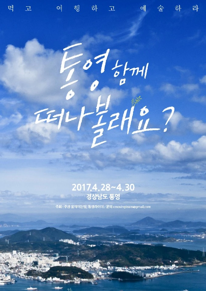 4월 28일부터 30일까지 2박 3일 동안 통영에서 먹고 여행하고 예술하는 여행이 시작된다. '통영 함께 떠나볼래요?'는 움직이는팀과 통영라이더가 함께 준비한 콜라보 프로젝트다. 이번 여행 프로젝트는 여행과 예술을 접목시켜, 참가자들이 글, 그림, 음악, 체험 등을 다양하게 즐길 수 있도록 준비됐다. 또한 추용호 소반장의 소반 제작 시연, 김종량 나전장의 나전칠기 체험이 준비되어있어, 쉽게 만날 수 없었던 장인들과의 만남도 준비했다.
