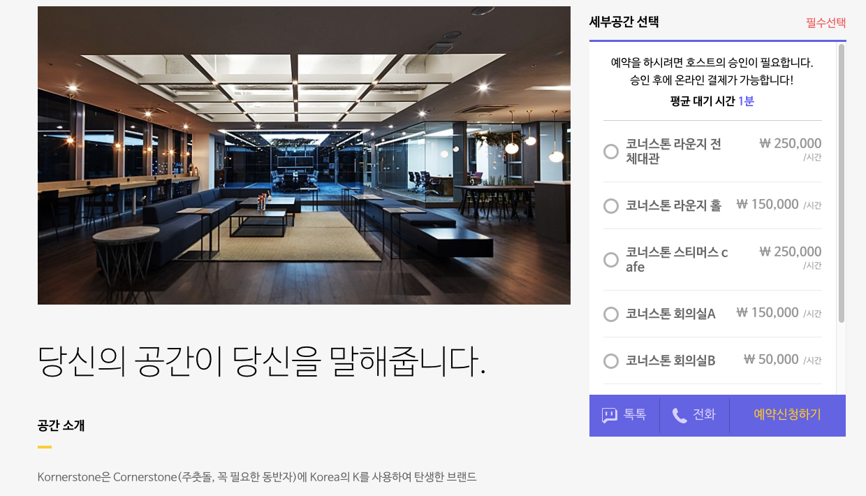코너스톤스페이스 예약 : https://spacecloud.kr/space/4125?qsearch=y