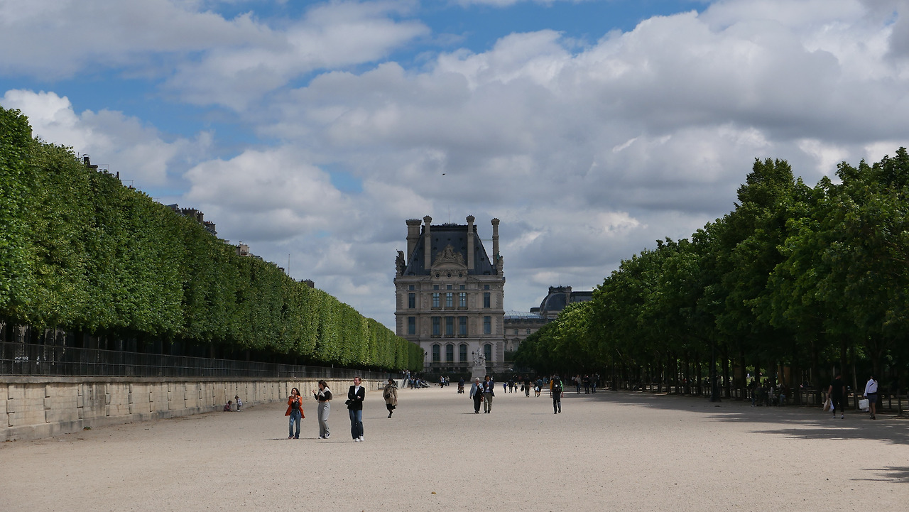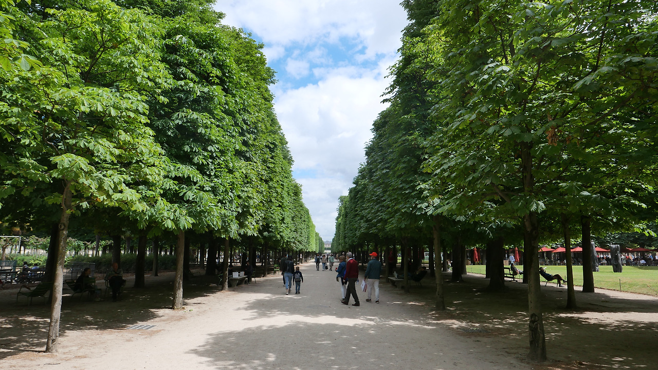 개선문에서 시작해서 샹젤리제 거리를 쭉 걸어가면 뛸르히 정원이 나온다. 사실 이렇게 걸어가는 사람은 많지 않을 것 같다. 거리가 정말 멀기 때문이다. 힘들어질 쯤에 나온 뛸르히는 다리의 아픔을 잊게 만들었다. 이 때쯤 햇빛이 너무 좋고 구름이 그림 같이 하늘에 떠있었다. 어릴 적 일본 여행을 갔다가 어느 정원에서 평생 살고 싶다는 생각을 한 적이 있다. 이 정원을 본 순간 아 나는 참 정원을 좋아하는구나를 깨닫게 되었다. 곳곳에 튀지 않는 초록색 의자들이 많이 놓여있었다. 사람들이 곳곳에서 앉아있었는데 이 자유로움이 좋다.