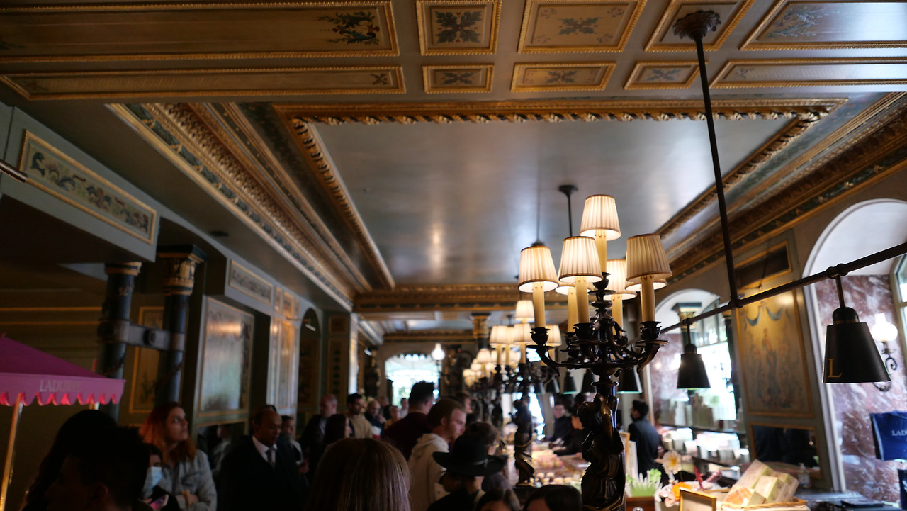 예전에 어릴 때 누나가 유럽 여행을 다녀와서 라뒤레 마카롱을 사다 준 적이 있는데 정말 너무 맛있었다. 거의 10년만에 그 맛을 보러 내가 직접 라뒤레에 갔다! 10년 전 먹었던 그 마카롱 이후에 먹었던 마카롱은 마카롱으로 느껴지지 않았었다. 긴 역사가 있는 이 마카롱 집은 줄을 서야만 들어갈 수 있었다. 내부도 너무 화려하고 예쁘게 잘 되어있다.