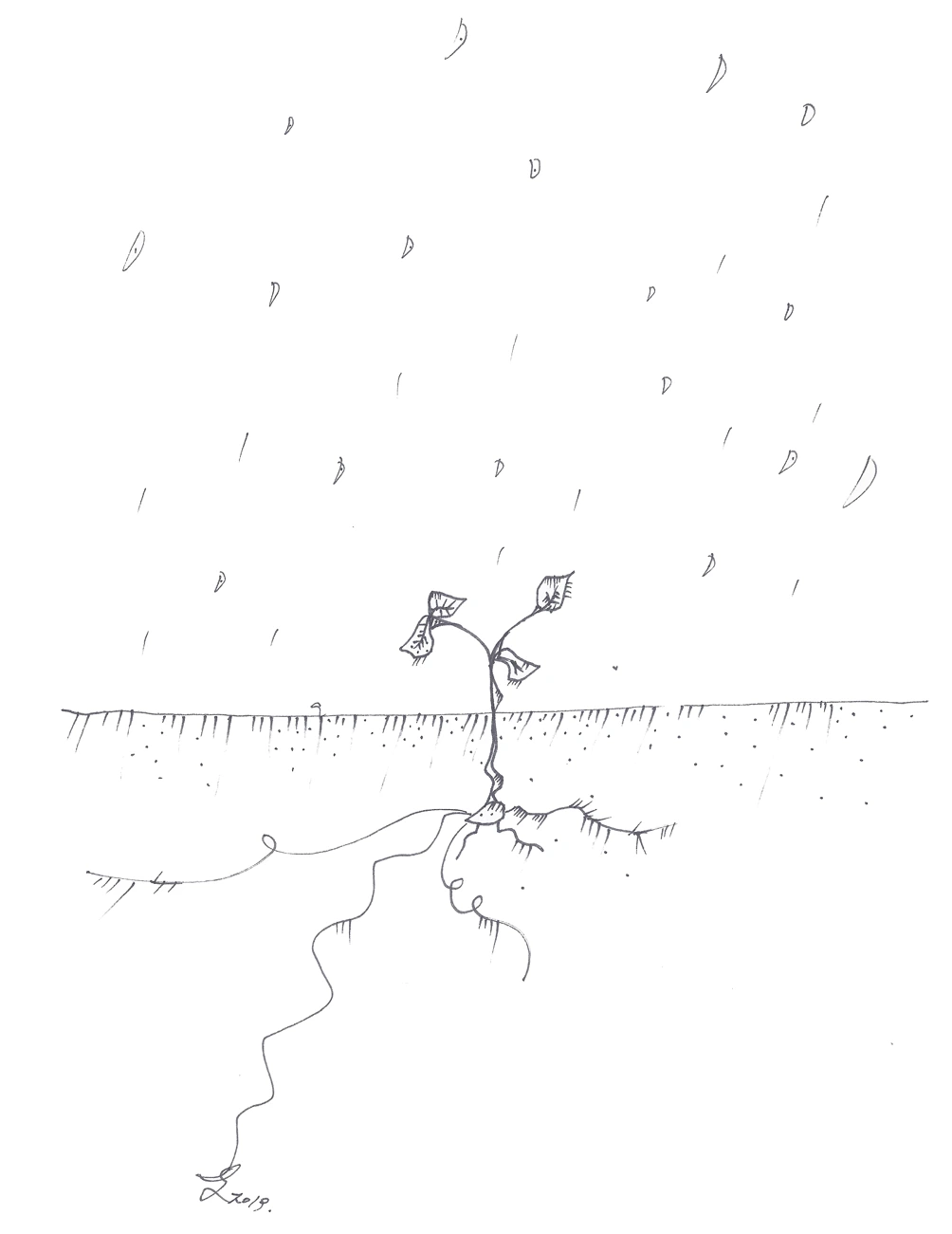 사과 씨앗 속에서 잠을 자던 사과 중 하나가 깊은 긴 꿈에서 나와 여린 새싹에게 처음으로 질문을 던졌어요.