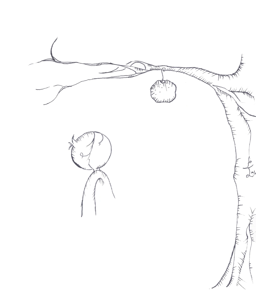 “정말 탐스러워! 빨리 어른 사과가 되렴, 너를 팔아 세상에서 제일 큰 부자가 될 거야!”