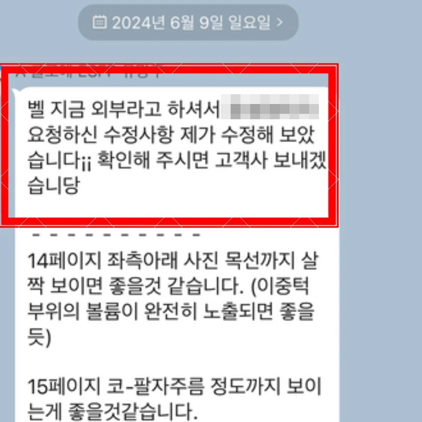 토요일 1차 수정을 원하시는 대로 해드리고 카톡을 잘 마무리했다.