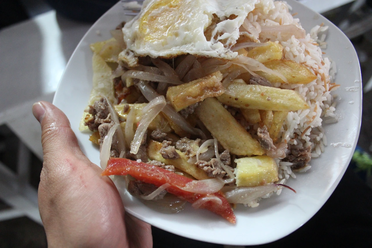 우리의 주된 대화 언어는 스페인어. 타로는 과테말라에서 스페인어 수업을 듣고 남미 여행 중이었기에 어느 정도 의사소통이 됐다. 나는 스페인어가 짧은데 신기하게 말은 통했다. 뭔가 설명하기 어려운 것들, 예를 들면 "마추픽추에 모기가 많아서 모기 퇴치제가 있으면 좋긴 한데 없어도 긴팔, 긴바지를 입으면 되니 꼭 필요한 건 아니다"는 일본어와 영어를 섞어서 말했다. 하하! 나 아직 죽지 않았구나. 타로와 같이 싼뻬드로 시장에 가서 5 솔짜리 로모살타도를 먹었다. 로모살타도는 소고기와 야채를 볶아 감자튀김과 함께 밥 위에 얹은 페루 대표 서민 음식이다. 우리 입맛에도 아주 잘 맞는다. 위에 계란 프라이를 얹으면(꼰 후에보) 1 솔이 추가된다. 시장 음식은 레스토랑에 비해 양은 2배고 가격은 절반이다. 물론 맛은 레스토랑이 좀 더 좋지만 시장 것도 나쁘지는 않다. 게다가 시장에는 피클 같은 새콤한 야채들이 테이블 위에 구비되어 있다. 사실 그냥 로모살타도만 먹으면 좀 느끼하다.