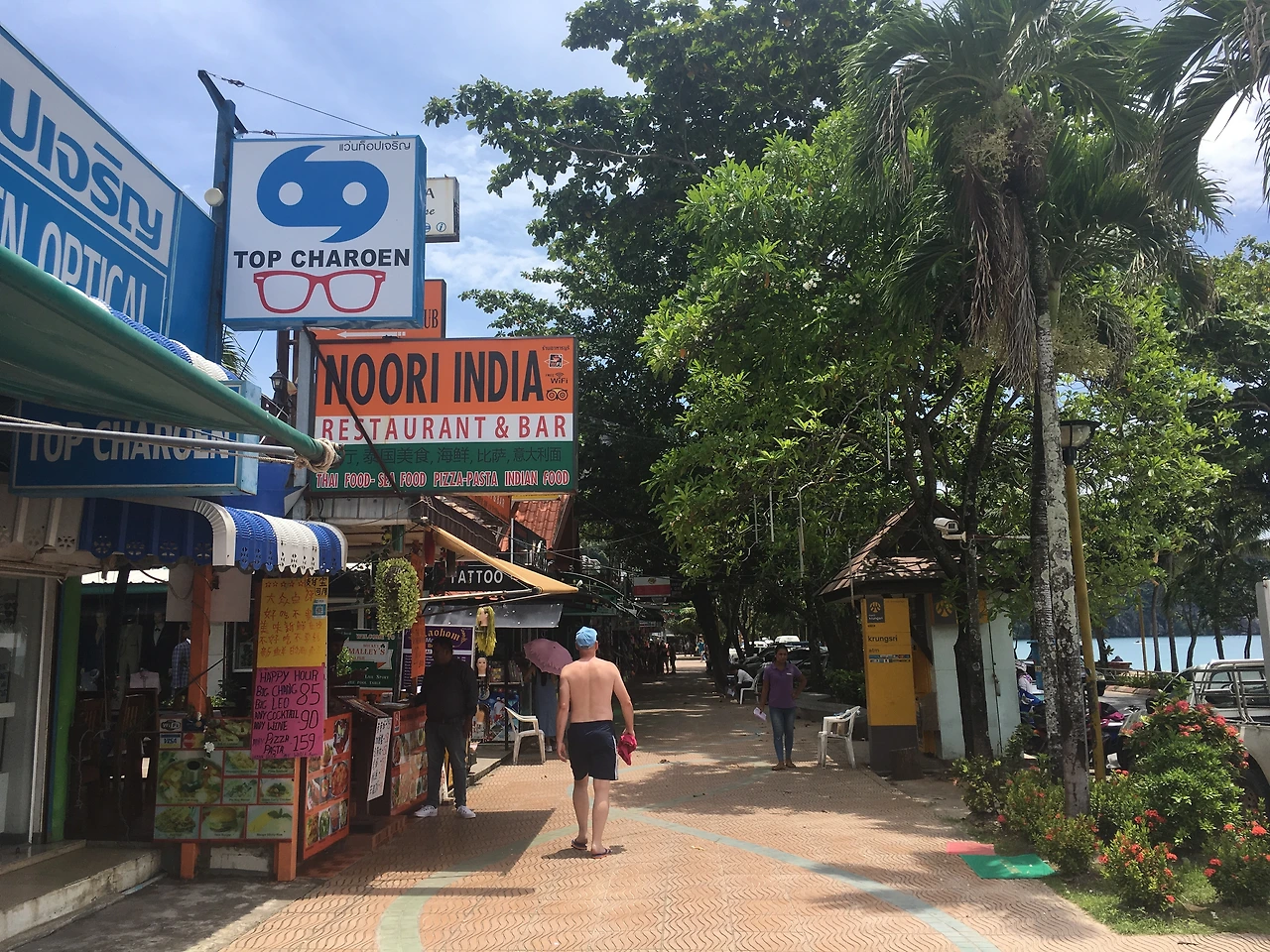 그런데 크라비에 도착 이후 매우 놀란 점은, 해변가에 인디안 레스토랑이 매우 많다는 점이었다. 보통 태국음식과 인도음식을 함께 판매한다. 인디안 레스토랑이 많아서인지 남아시아계로 추정되는 관광객들도 매우 많이 보인다. 일행 중 인도인이 있던 우리는 사진 속의 누리 인디아에 몇번 갔는데 서빙하는 분은 인도계 미얀마인이라고 하였다. 인도 사람들의 방문이 많아 무슬림의 할랄푸드, 유대교의 코셔푸드처럼 자이나교를 위한 음식, 채식주의자를 위한 음식들도 준비되어 있다고 했다. 또한 메뉴판에는 정통 인도음식뿐 아니라 중국식 인도음식도 준비되어있었다. '미국식 중국음식'은 많이 들어봤어도 '중국식 인도음식'은 신선한 경험이었다.