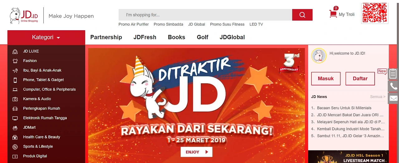 인도네시아 편의점 최강자인 인도마릇이 강력한 오프라인 유통망을 바탕으로 온라인 마켓플레이스 진출에 의지를 보이는거 같다. 그러나 홈페이지가 다른 온라인마켓플레이스들에 비해 디자인 측면에서 부족한점이 많다고 생각한다. 온라인만 비교를 했을때 장점이 뭘까...?