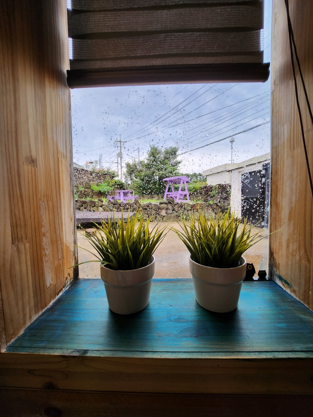 우리 가족은 객실로 챙겨 온 짐과 함께 주차된 장소로 이동하였고, 차는 2층에 있었다. 남편과 셋째는 먼저 엘리베이터를 타고 5층 로비에서 내려갔고, 나와 큰 아이들은 계단을 통해 내려갔다. 이어 순서가 될 때까지 무한 대기. 설레는 마음으로 일찍 선착장에 도착한 것이 화근이었을까. 더운 날씨지만 폐쇄된 공간인 탓에 시동은 걸 수 없었고, 우리는 늦게 온 차가 먼저 나갈 때까지 무작정 기다릴 수밖에 없었다. 아뿔싸! 심지어 인터넷 연결도 되지 않아 우리 가족은 어둡고, 더운 공간에서 앞선 차가 빠져나갈 때까지 그저 기다리고 또 기다렸다. 3, 40분 정도의 시간이 흘렀을까. 드디어 배 밖으로 나왔다. 와! 제주도다!(제주도보다 에어컨 바람이 반가웠던 건 아닐는지.) 우리는 서둘러 내비게이션에 숙소 주소를 입력하고 출발하였다. 숙소 체크인 시각은 4시. 제주항에서 숙소까지 30분 정도 소요되는 것을 감안했을 때 남는 시간(대략 1시간 30분)을 어떻게 보낼지 생각했다. 그런 와중에 숙소 측에서 3시 반 입실도 가능하다고 연락이 왔고, 여행지 한 곳을 들러 가기에는 빠듯한 시간이기에 우리는 채 준비하지 못한 생필품과 식료품을 구입하기로 했다. 그렇게 제주도에 도착하여 가장 먼저 향한 곳은 함덕에 위치한 생필품 가게, 다이소. 한 달 동안 머물 것을 고려하여 무리하게 짐을 싸기보다 무겁고 자리 차지를 많이 하는 물건은 제주에 도착하여 직접 사기로 했다. 비가 추적추적 오는데 때마침 셋째가 잠이 들어 남편과 셋째는 차 속에서 기다렸고, 나와 큰 아이들은 다이소에서 필요한 물건을 구입했다. 쇼핑을 간단히 마친 뒤 우리는 무사히 시간에 맞춰 도착할 수 있었고, 사진으로만 보던 숙소가 바로 눈앞에 펼쳐졌다.